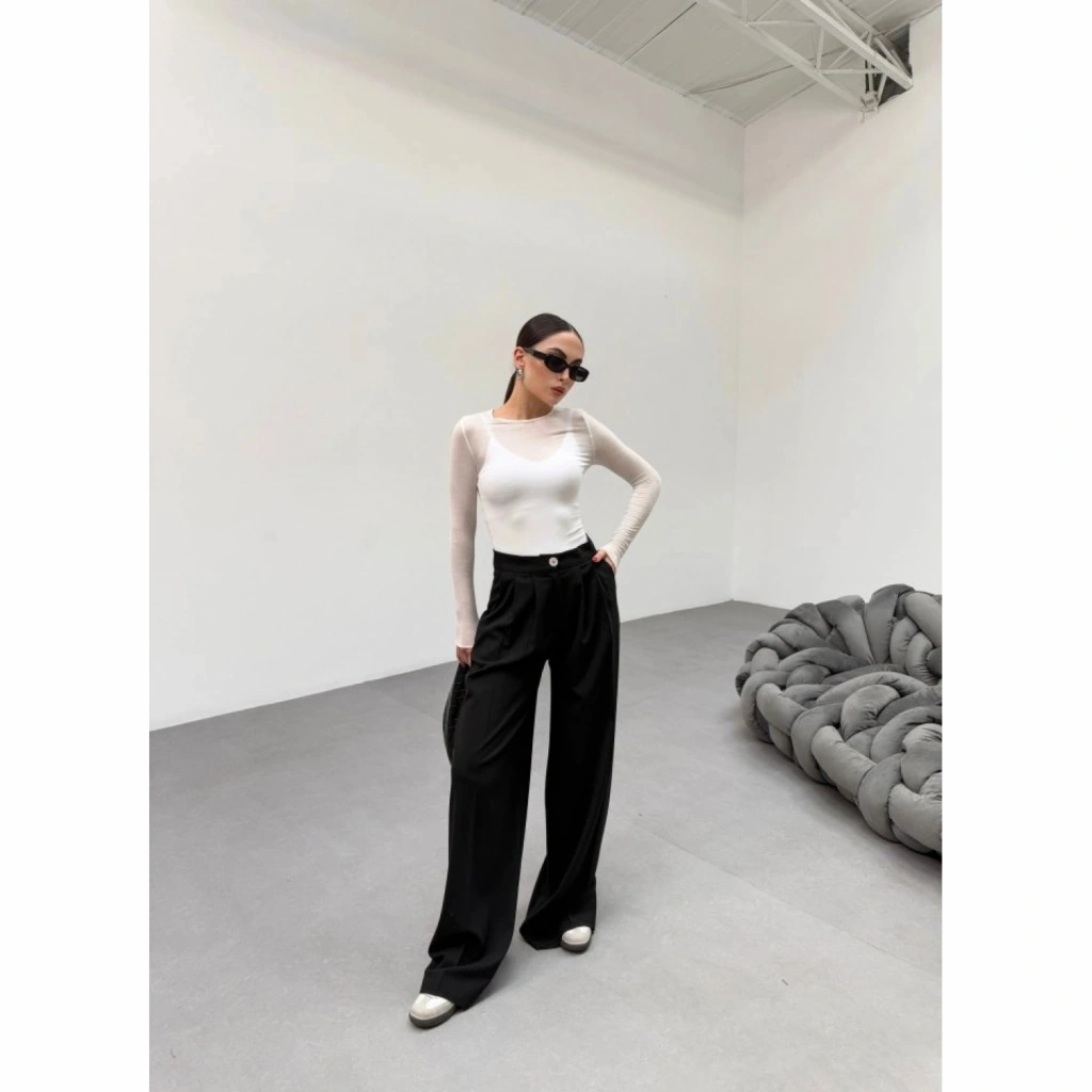 230 Gr Poly Viscose Full Lycra Pi̇leli̇ Palazzo Pantolon