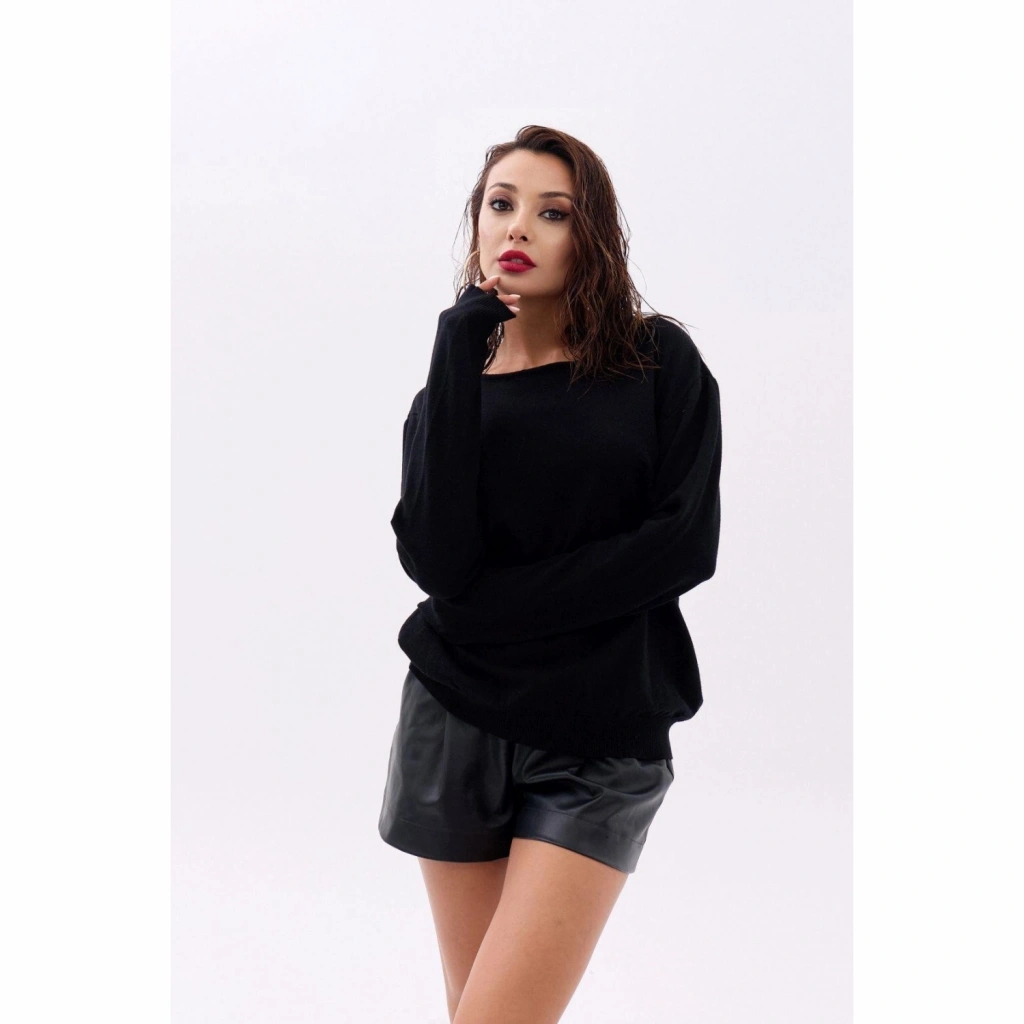 4216 TRİKO DÜZ SALAŞ KAZAK-SİYAH