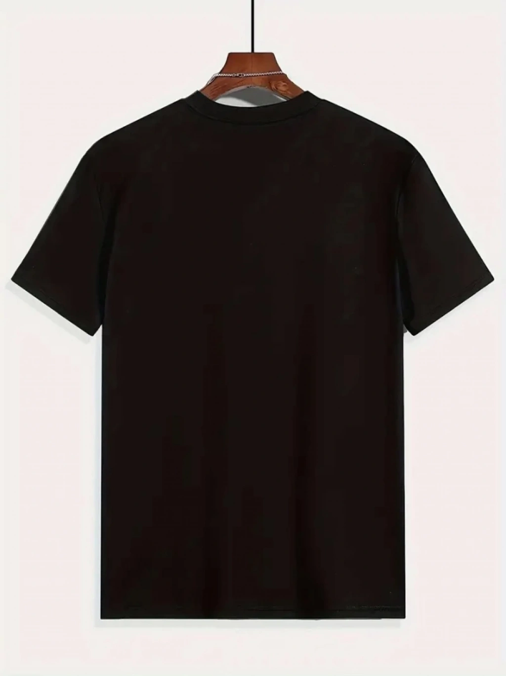 Baskılı Oversize Bisiklet Yaka T-shirt - Siyah