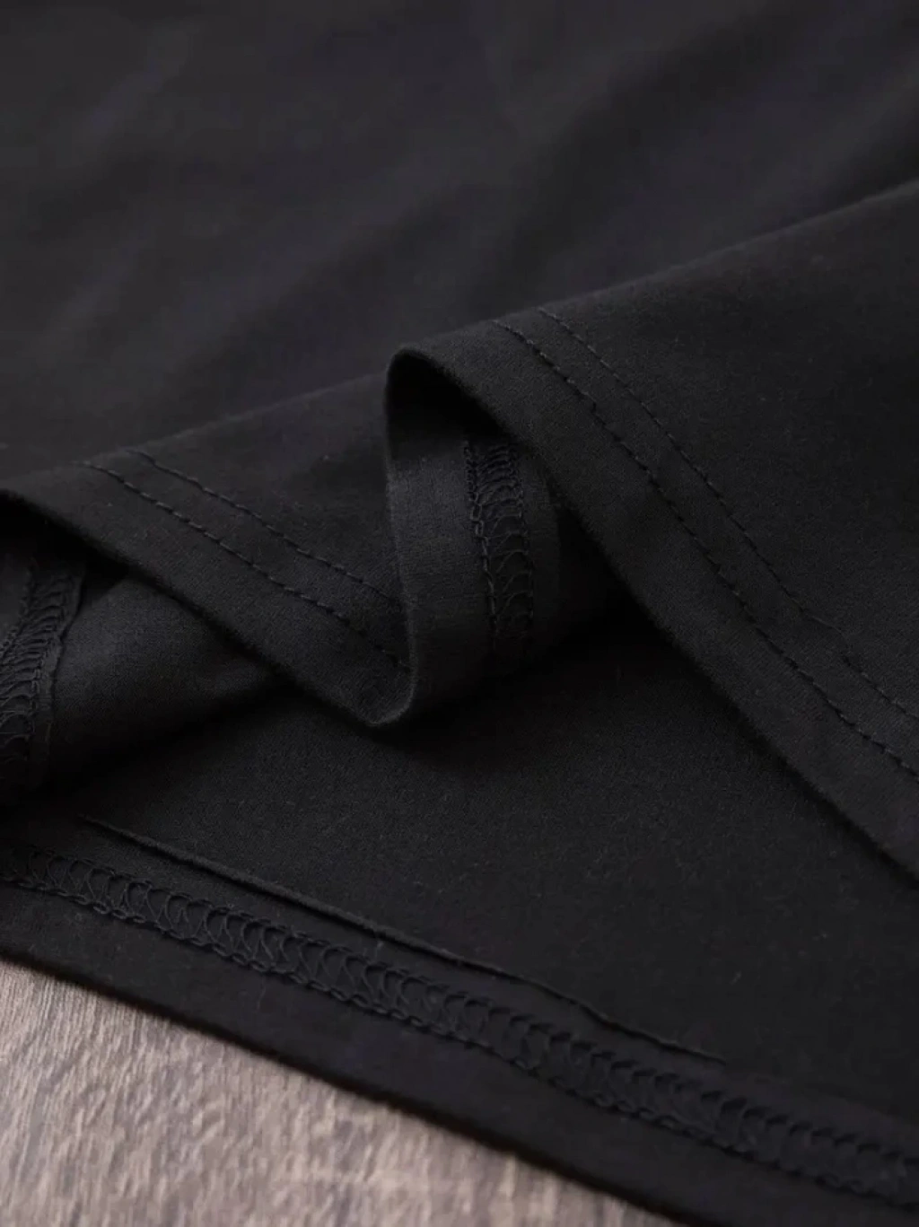 Baskılı Oversize Bisiklet Yaka T-shirt - Siyah