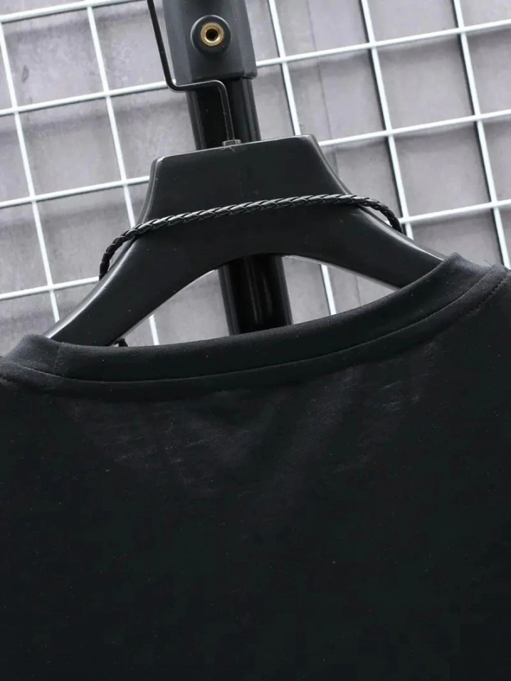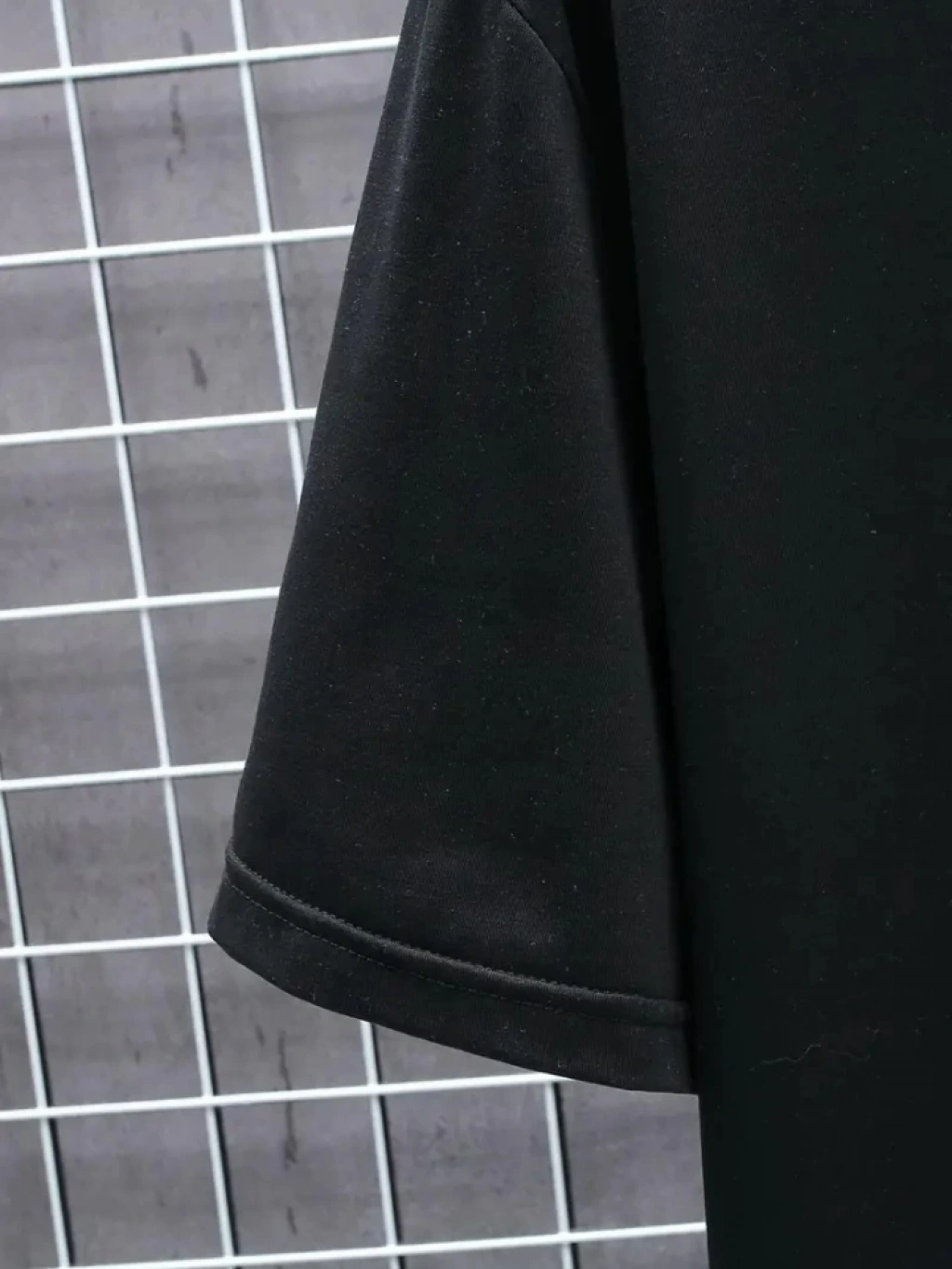 Erkek Bisiklet Yaka Ön Baskılı Kısa Kollu Tişört Streetwear Günlük Basic Pamuklu T-shirt - Siyah