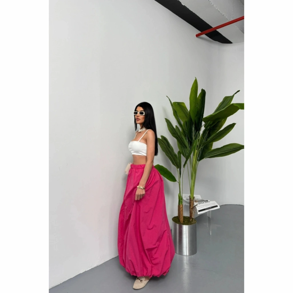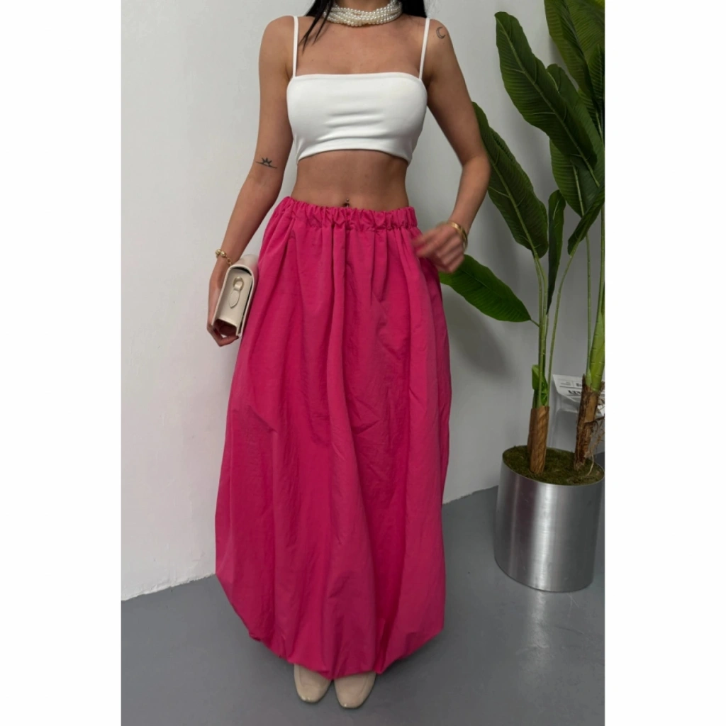 BEL LASTİKLİ BALON ETEK ŞANEL BOY SOFT KUMAŞ - Fuşya