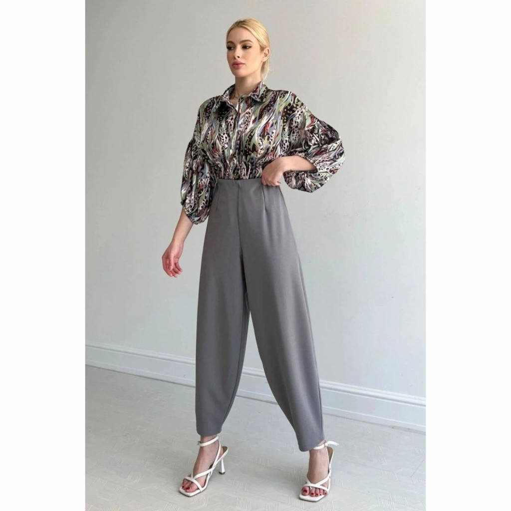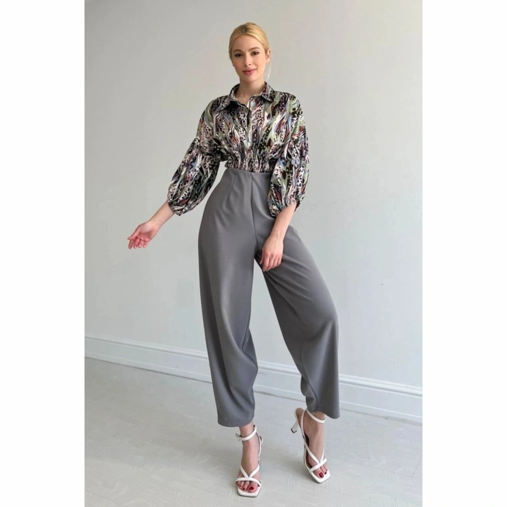 Beli Lastikli Saten Gömlek - Lila
