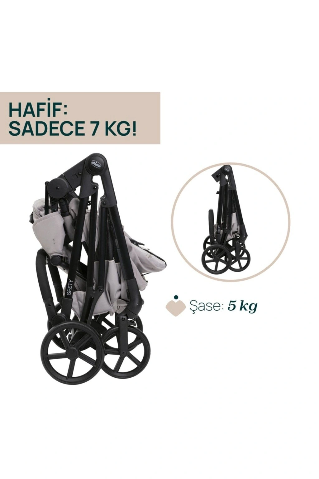 • Seety bebek arabası, günlük zorluklarla başa çıkabilen hafif ve çevik bir modüler sistemdir