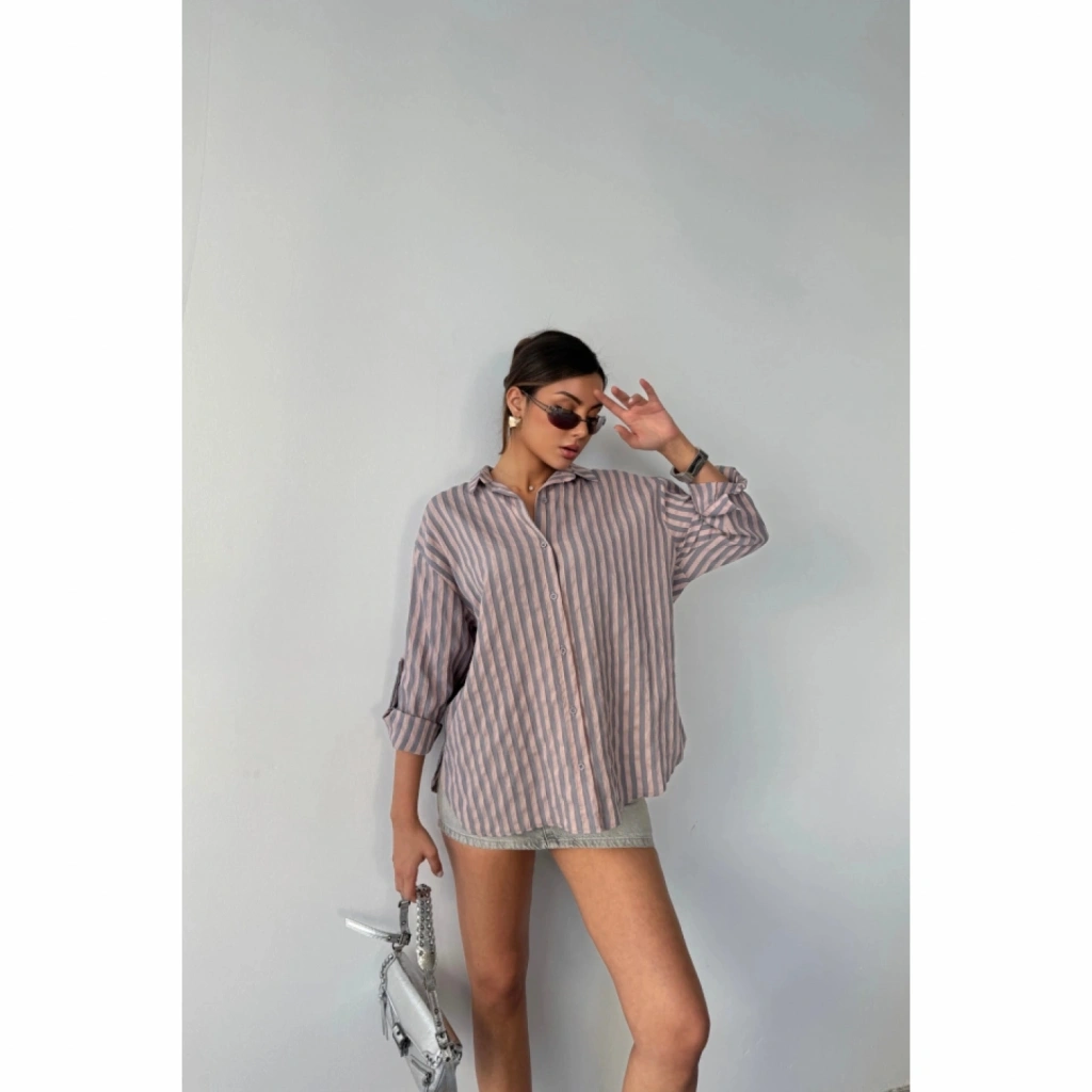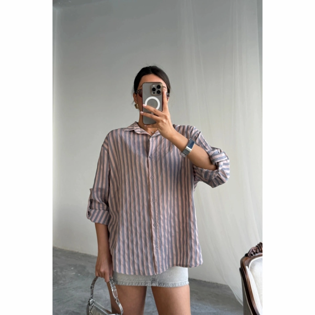 ÇİZGİLİ GÖMLEKKETEN - Antrasit