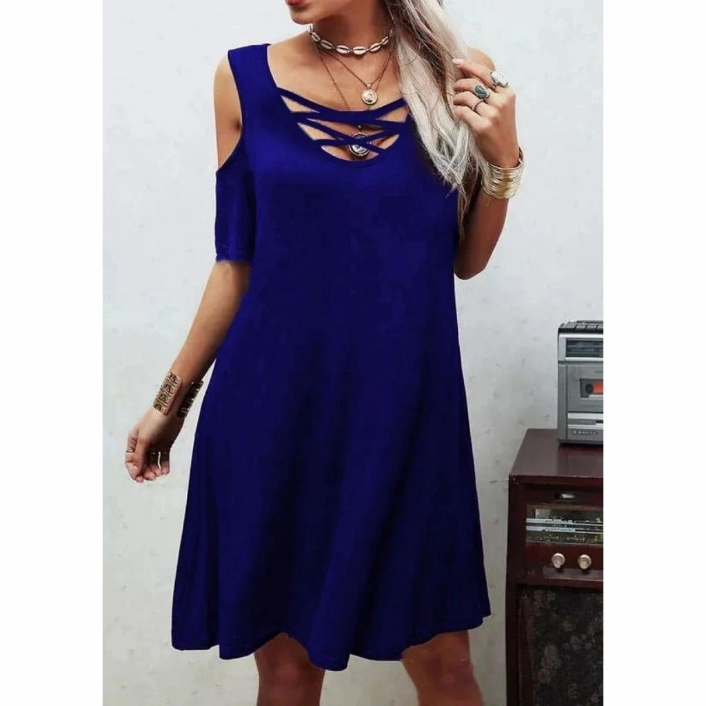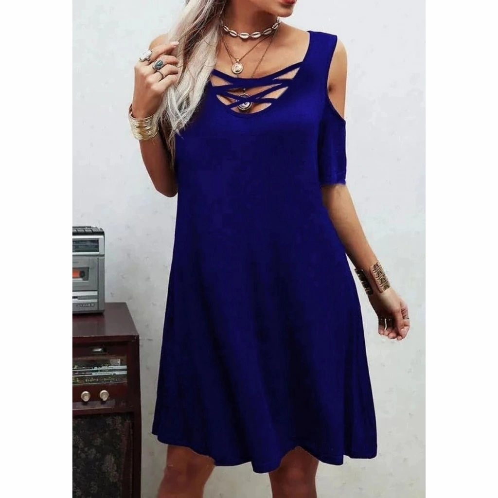 Dekolteli Bağcık Detay Viskon Kumaş Elbise