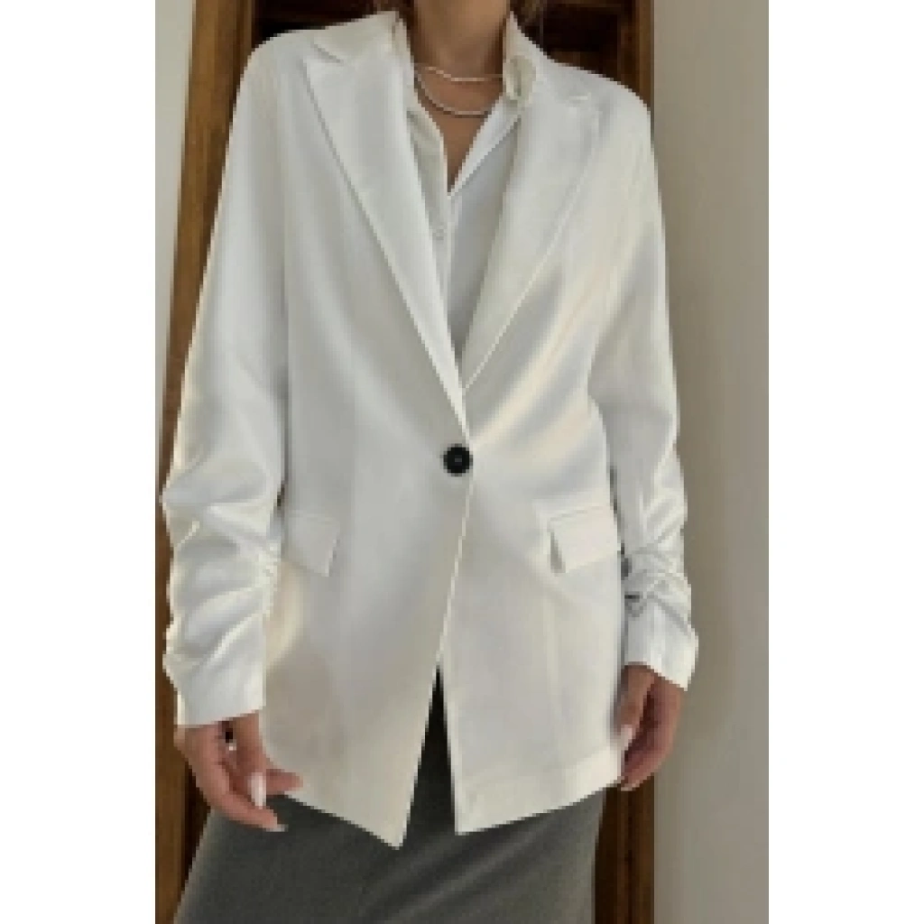 Ekru Kol Ucu Büzgülü Atlas Ceket