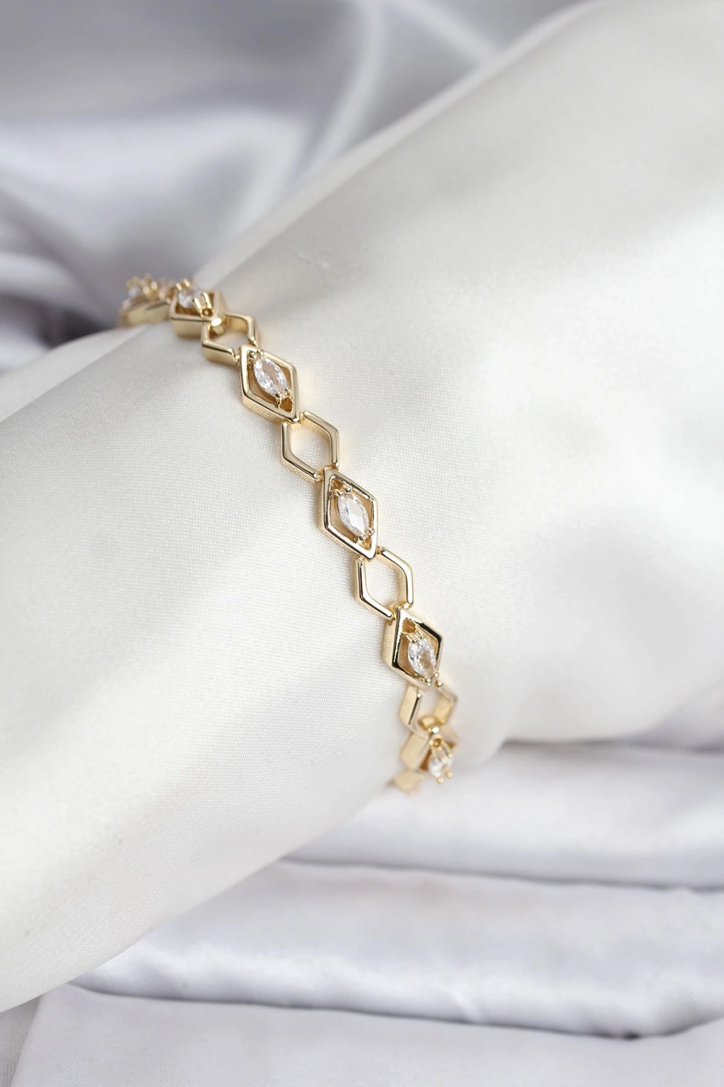 Erb 14K Gold Renk Kaplama Baklava Dilim Model Kadın Bileklik