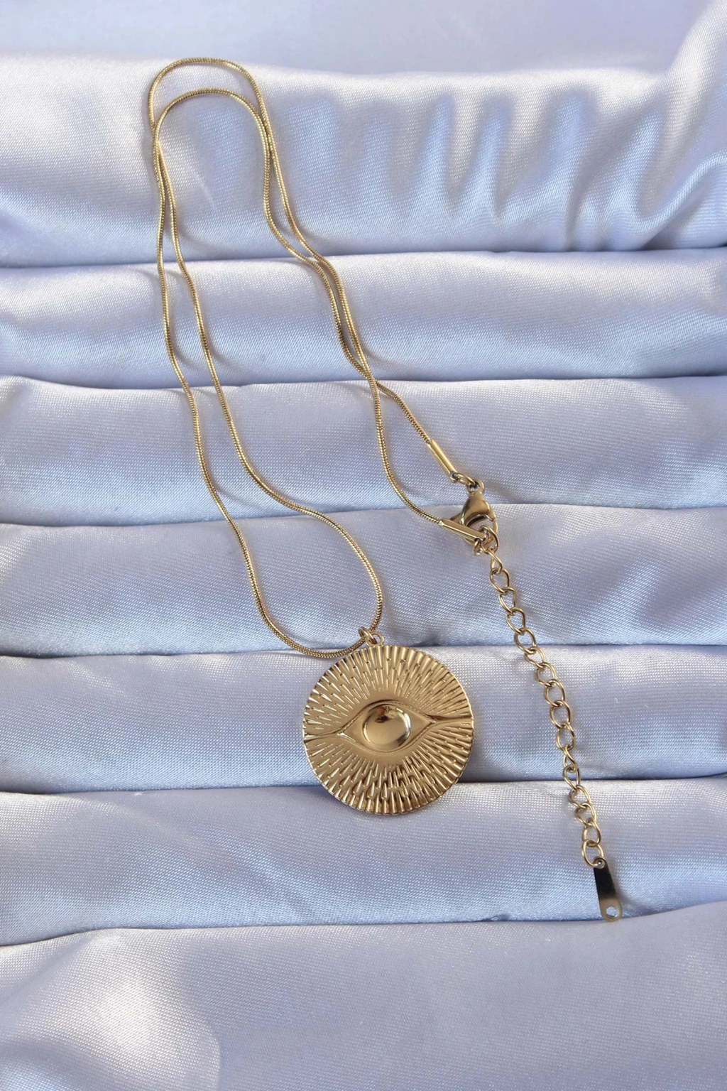 Erb 316L Altın Renk İşlemeli Göz Kolye