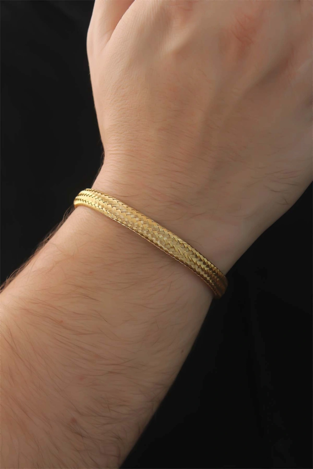Erb 316L Çelik Altın Renk Kalın Yassı Örgü Model Erkek Bileklik