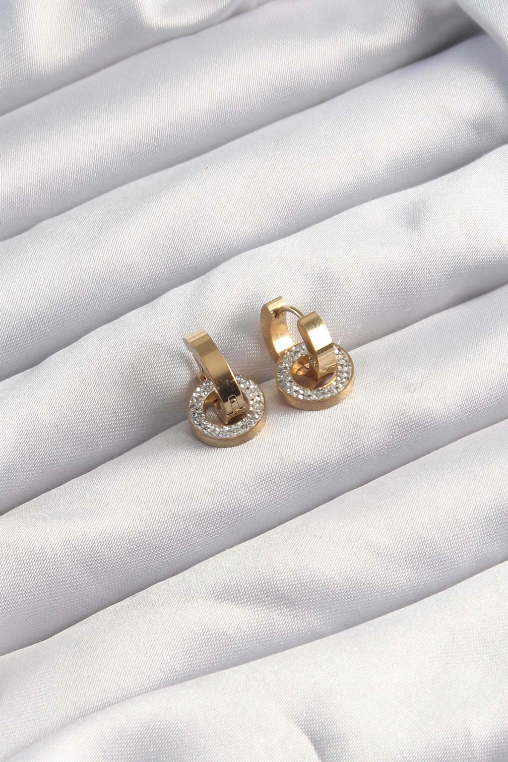 Erb 316L Çelik Altın Renk Zirkon Taşlı Halka Model Küpe