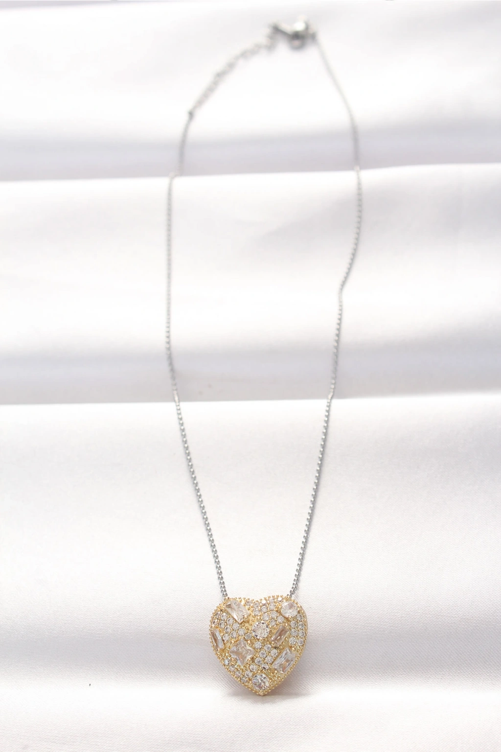 Erb 316L Çelik Çift Renk Zirkon Taşlı Kalp Kolye