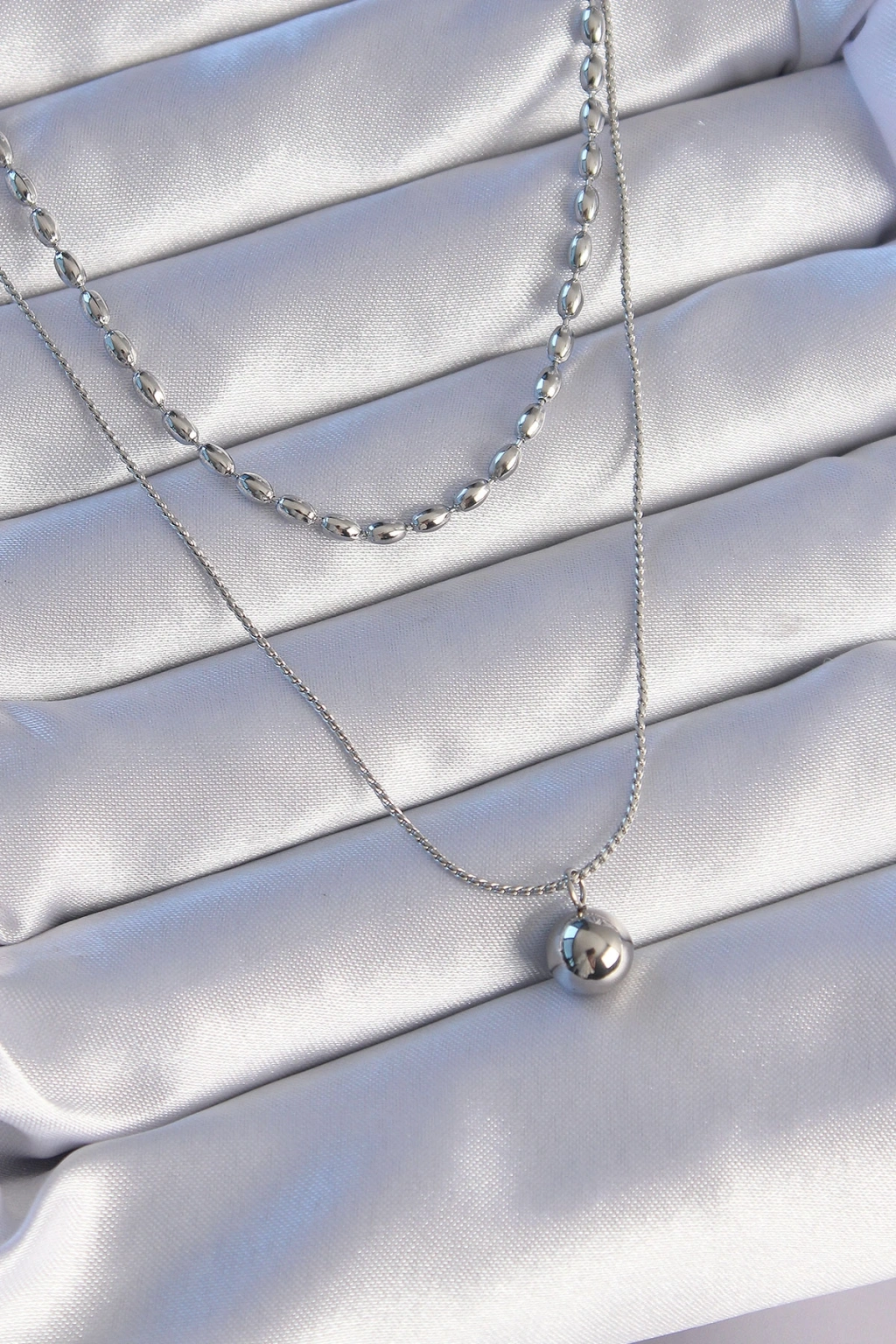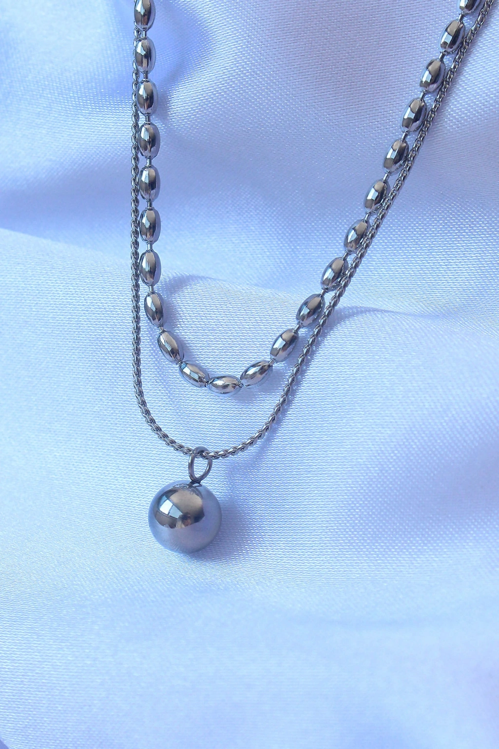 Erb 316L Çelik Çift Zincirli Gümüş Renk Topçuk Model Kolye