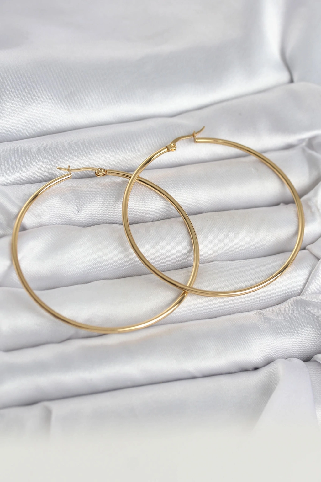 Erb 316L Çelik Gold Renk 60 Mm Halka Kadın Küpe