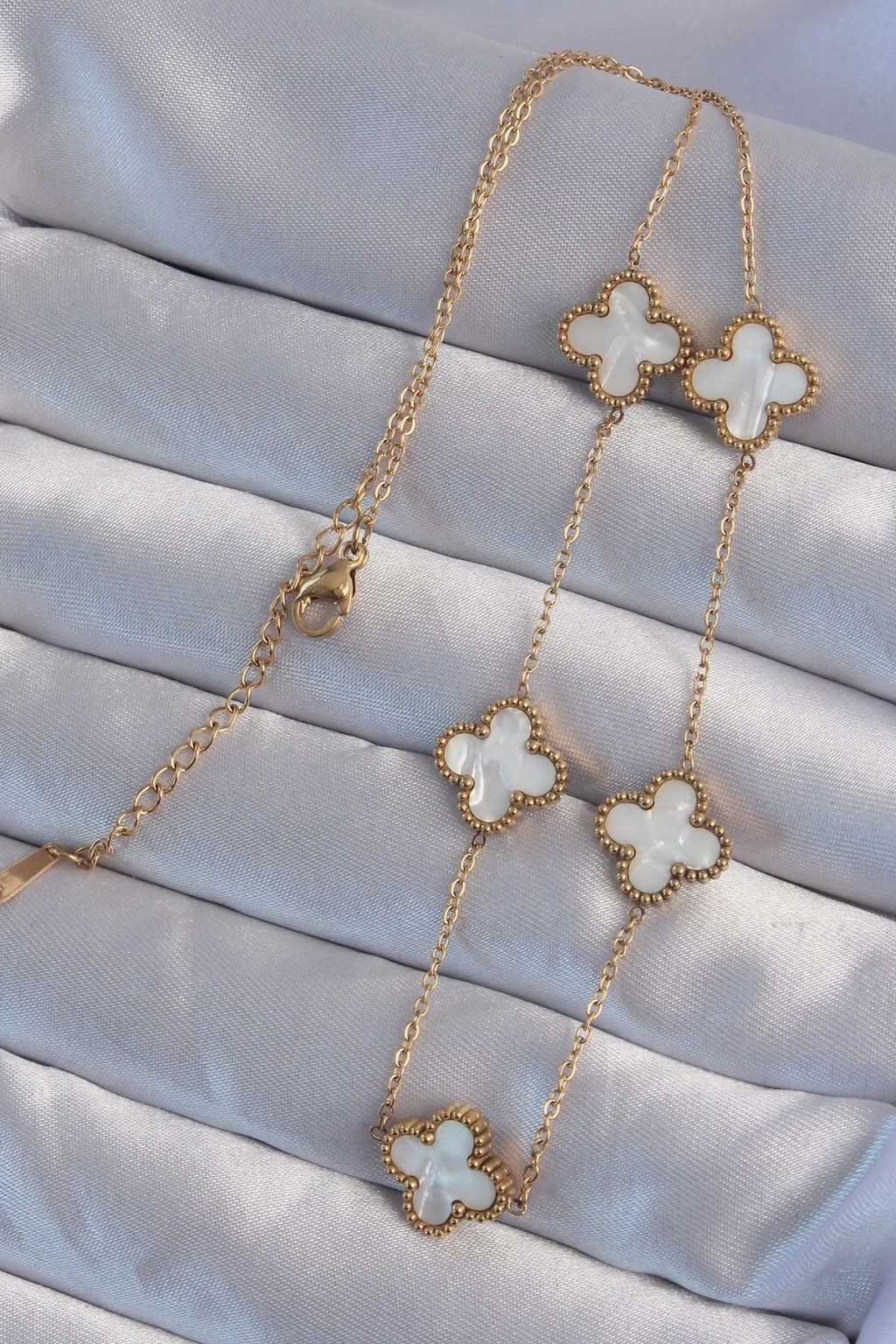 Erb 316L Çelik Gold Renk Beyaz Sedefli Yonca Kolye