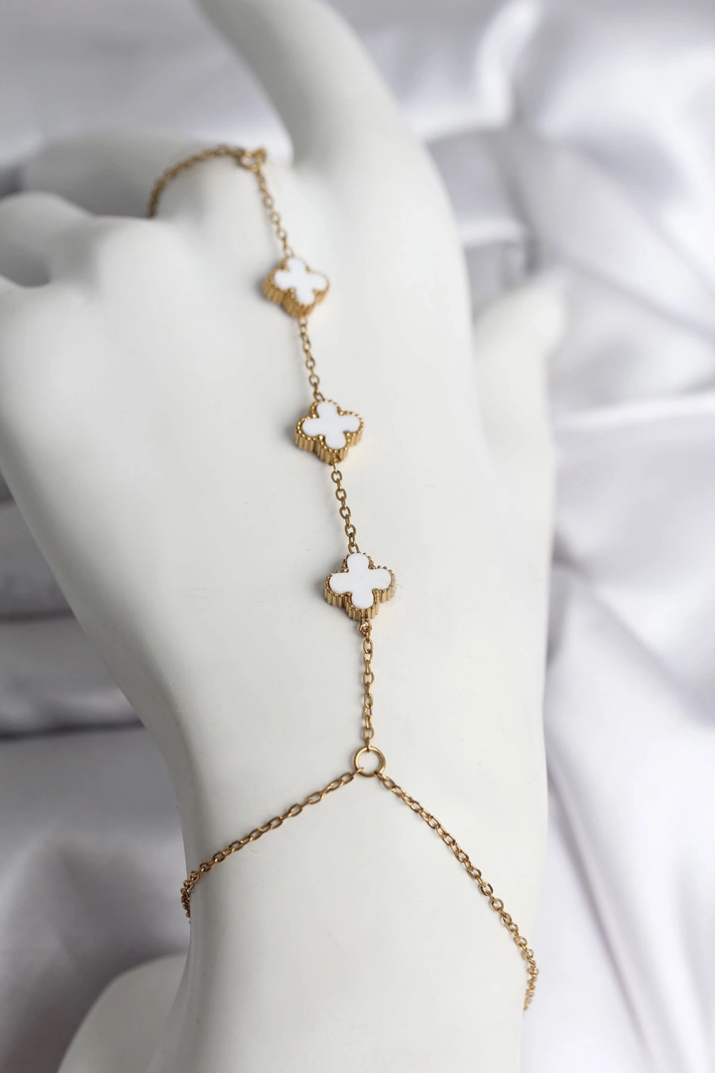 Erb 316L Çelik Gold Renk Beyaz Yonca Model Kadın Şahmeran