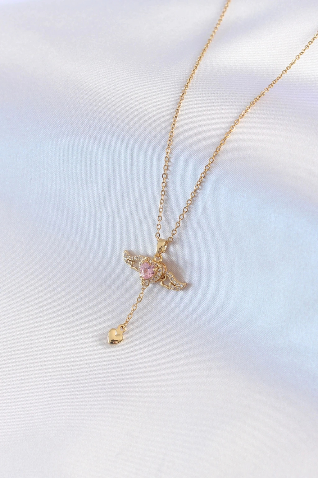 Erb 316L Çelik Gold Renk Kanatlı Kalp Model Zirkon Taş Detay Kadın Kolye