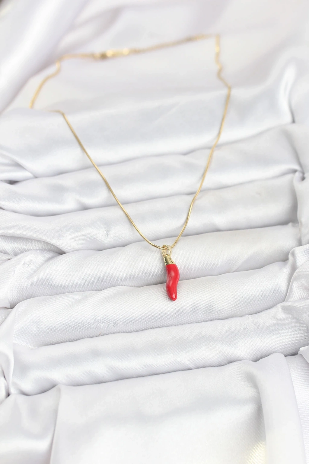 Erb 316L Çelik Gold Renk Kapya Kırmızı Biber Model Kadın Kolye