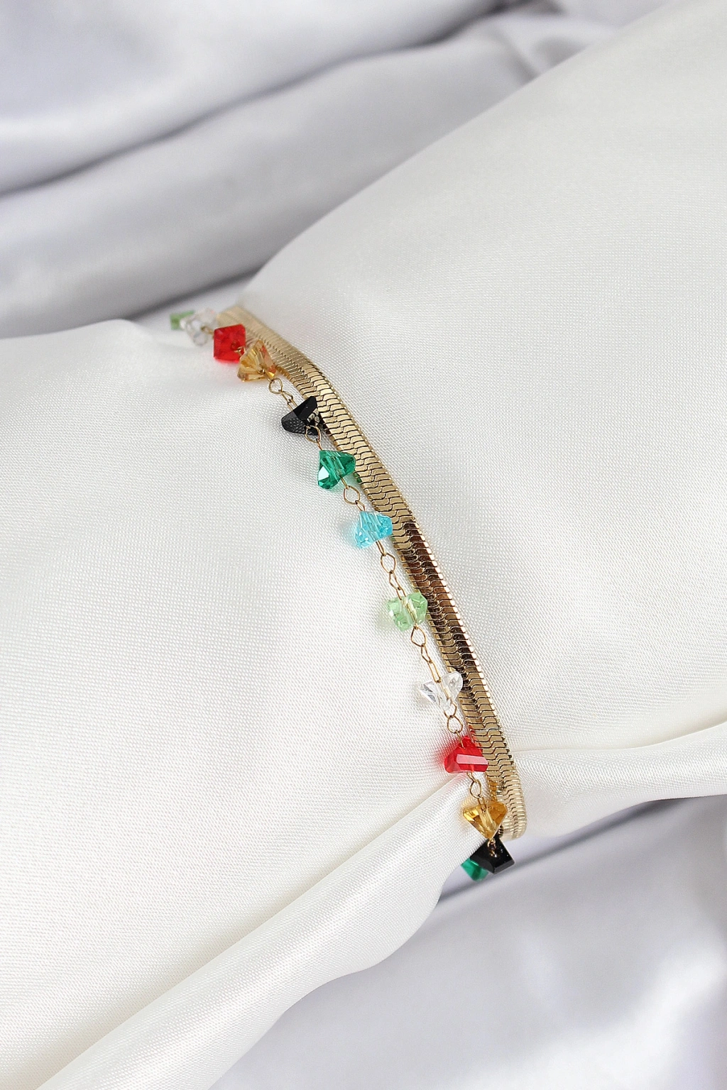 Erb 316L Çelik Gold Renk Kristal Karışık Renkli Taşlı 2'li Kadın Bileklik