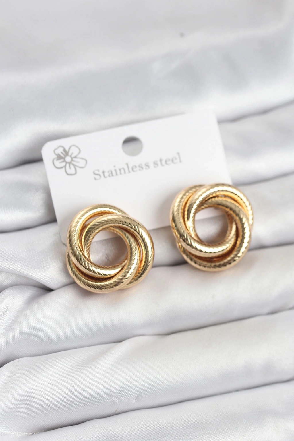 Erb 316L Çelik Gold Renk Lazerli Sarmal Halka Kadın Küpe