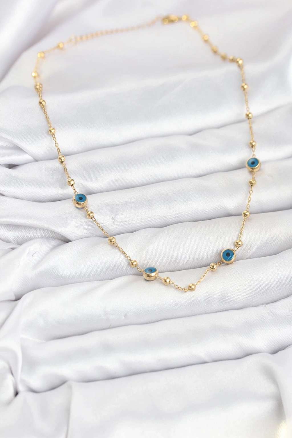 Erb 316L Çelik Gold Renk Nazarlı Ve Topçuklu Model Kadın Kolye
