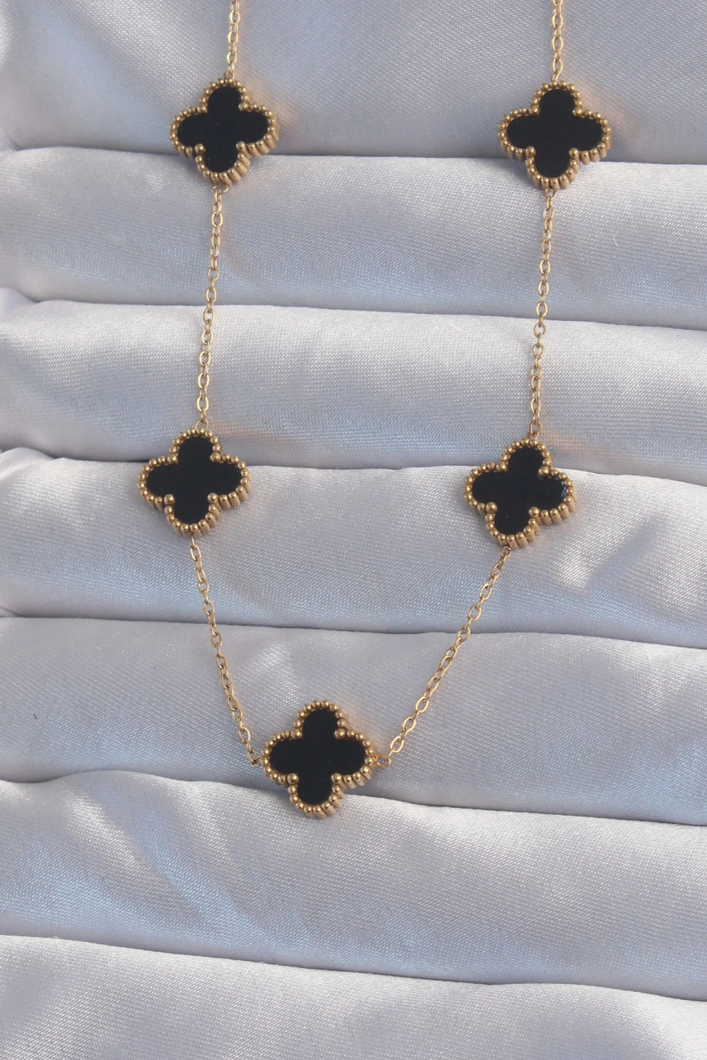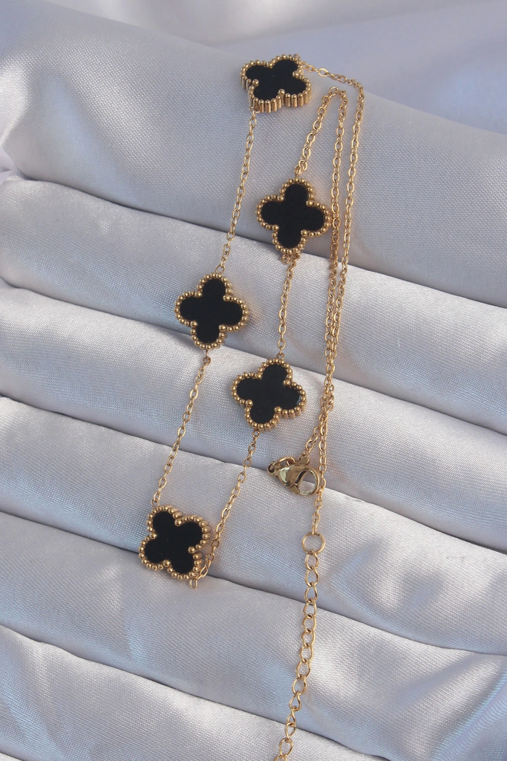 Erb 316L Çelik Gold Renk Siyah Mineli Yonca Kolye