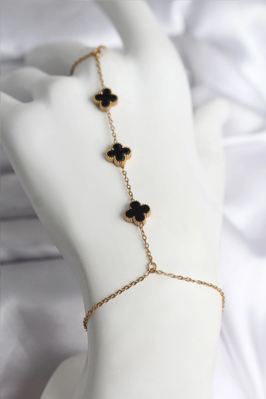 Erb 316L Çelik Gold Renk Siyah Yonca Model Kadın Şahmeran