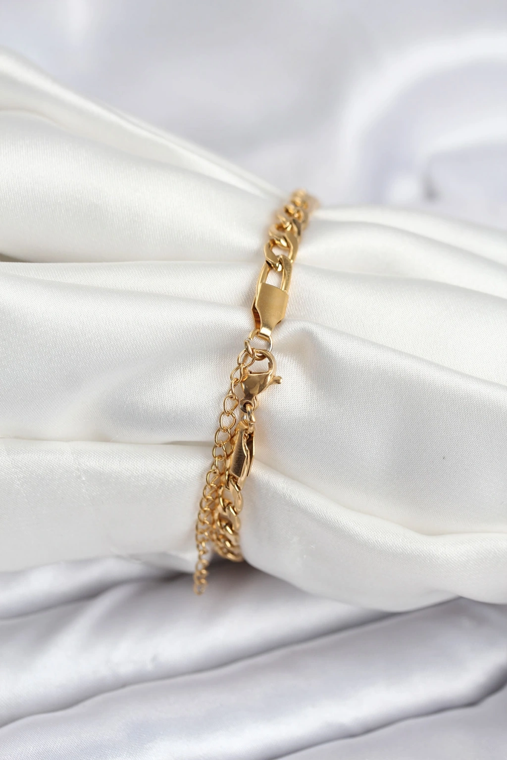 Erb Gold Renk Zincir Model Zirkon Taşlı Pirinç Asansörlü Kadın Bileklik