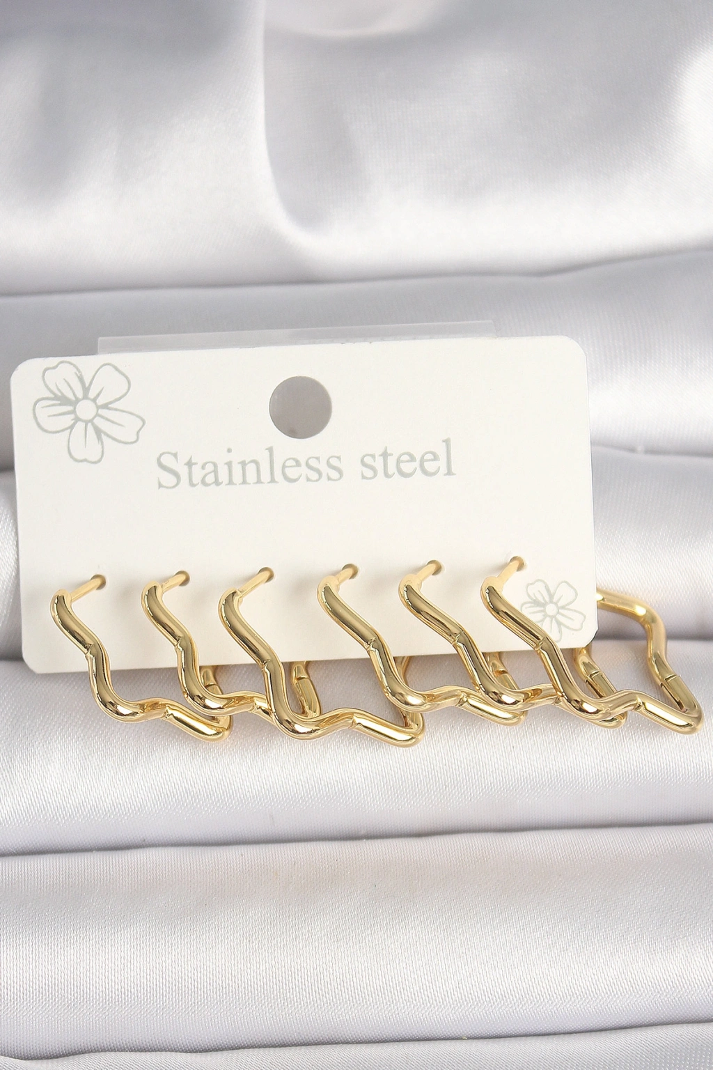 Erb 316L Çelik Gold Renk Yıldız Model Kadın Küpe Seti