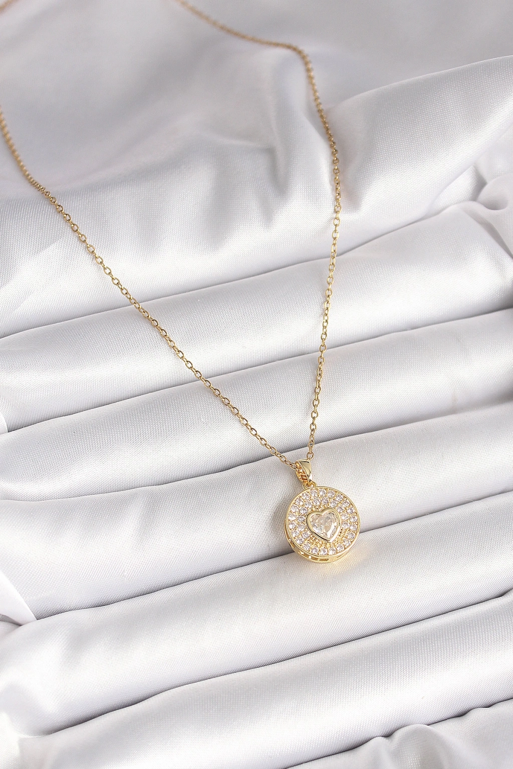 Erb 316L Çelik Gold Renk Zincir Madalyon Zirkon Taşlı Kalp Model Kadın Kolye