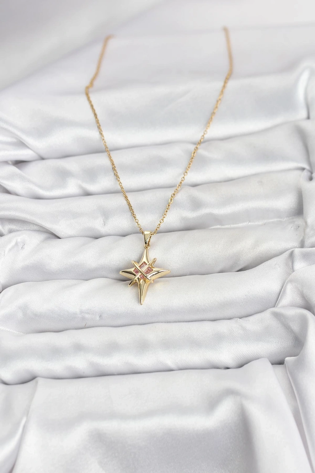 Erb 316L Çelik Gold Renk Zirkon Taşlı Kutup Yıldızı Model Kadın Kolye