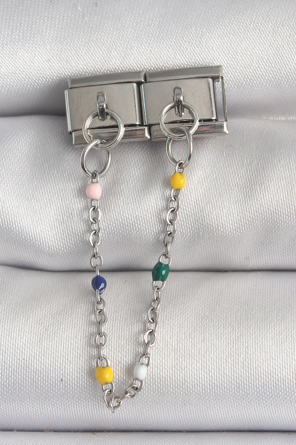 Erb 316L Çelik Gümüş Renk 2'Li Sallantı Zincir Model Nomination Charm
