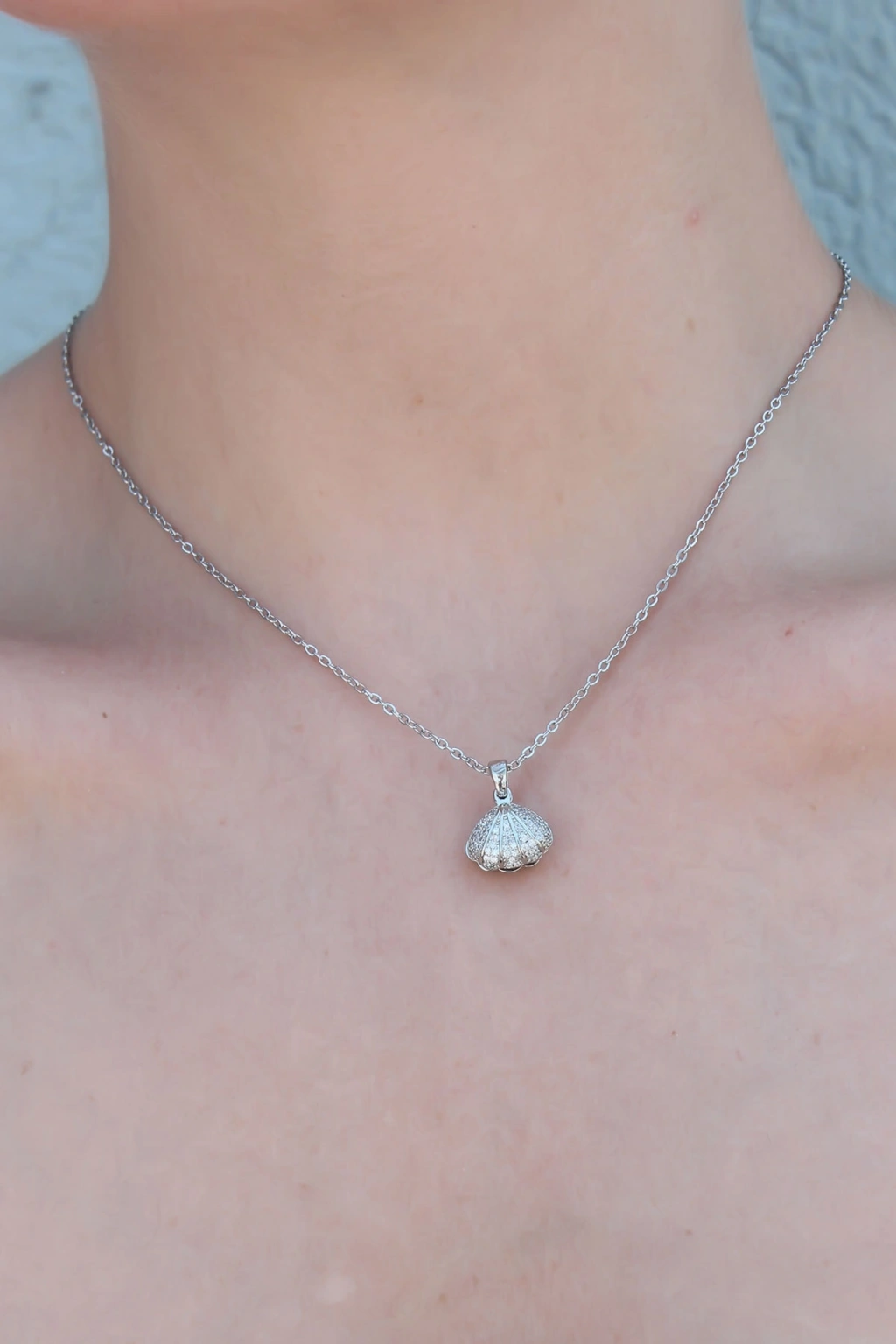Erb 316L Çelik Gümüş Renk Açılır Midye Model Kadın Kolye