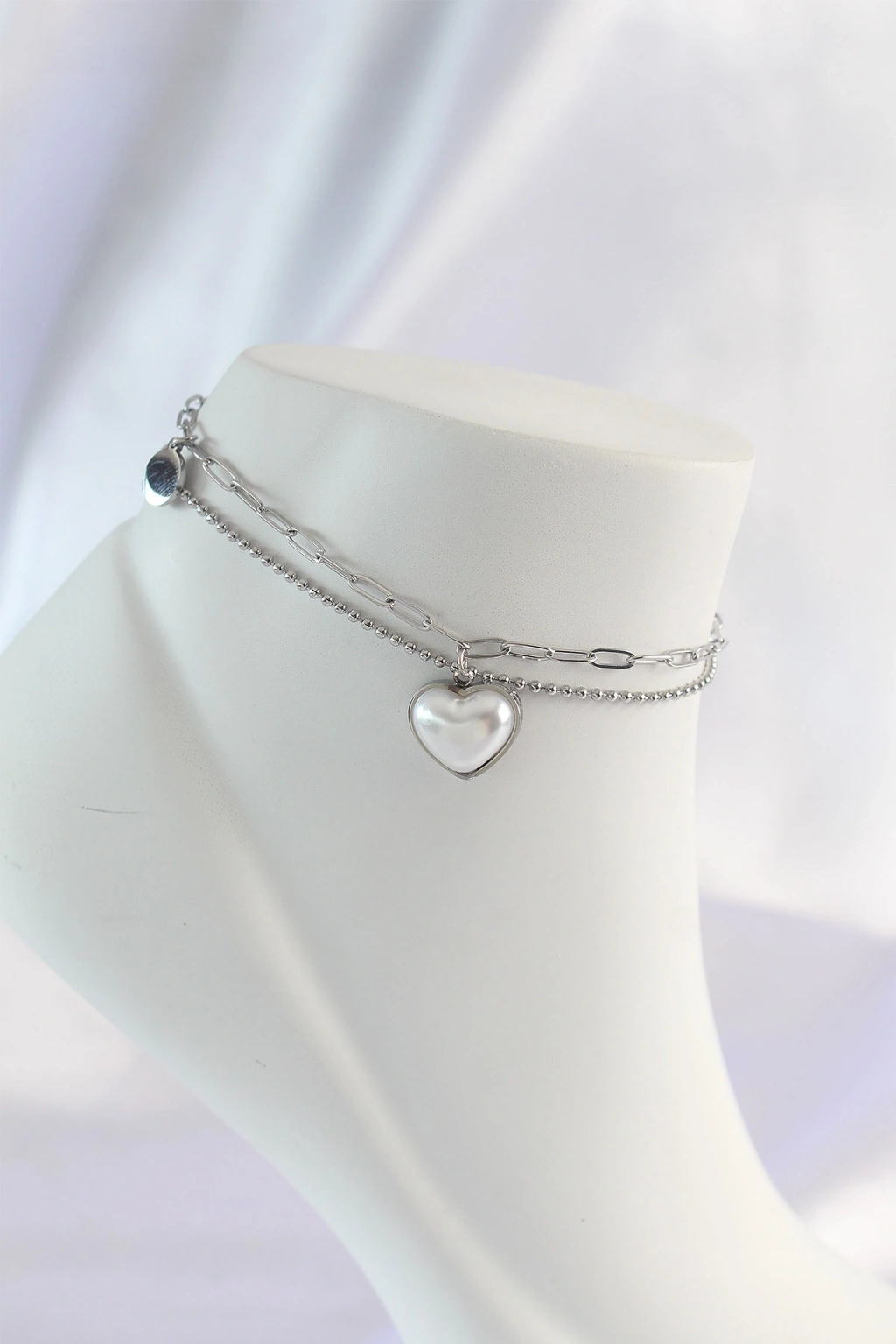 Erb 316L Çelik Gümüş Renk Kalp Figür Kadın Halhal