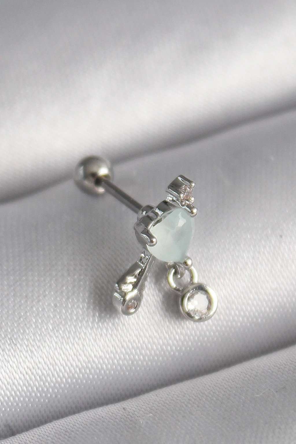 Erb 316L Çelik Gümüş Renk Beyaz Minelik Kalp Sallantı Zirkon Taş Detay Tragus Piercing