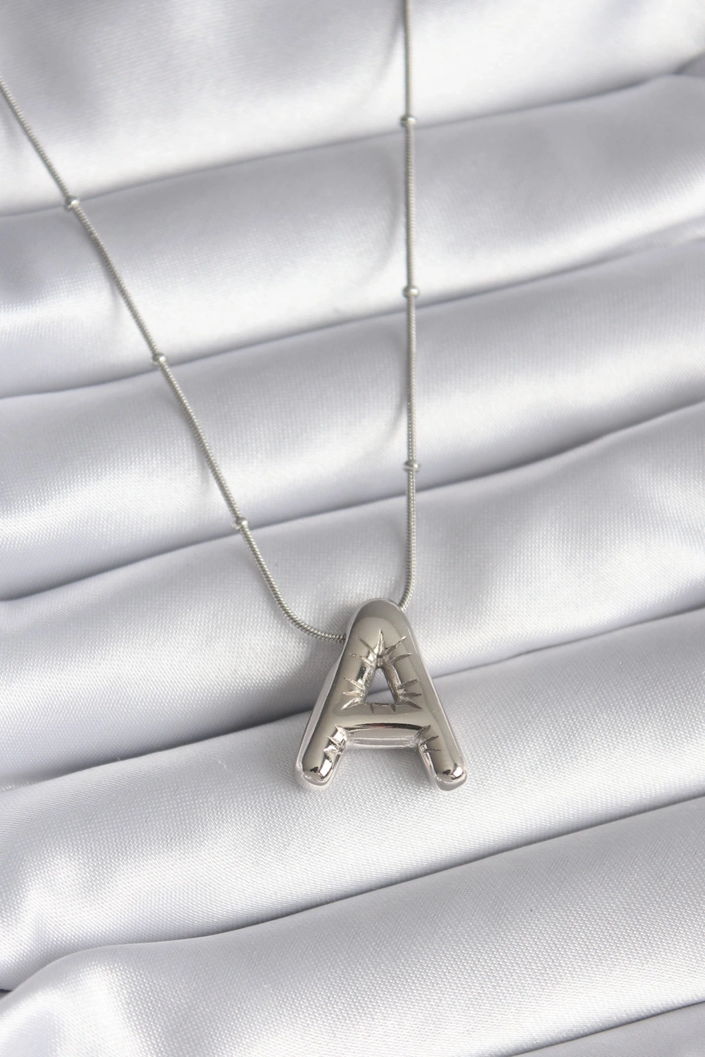 Erb 316L Çelik Gümüş Renk Bubble "A" Harf Model Kadın Kolye