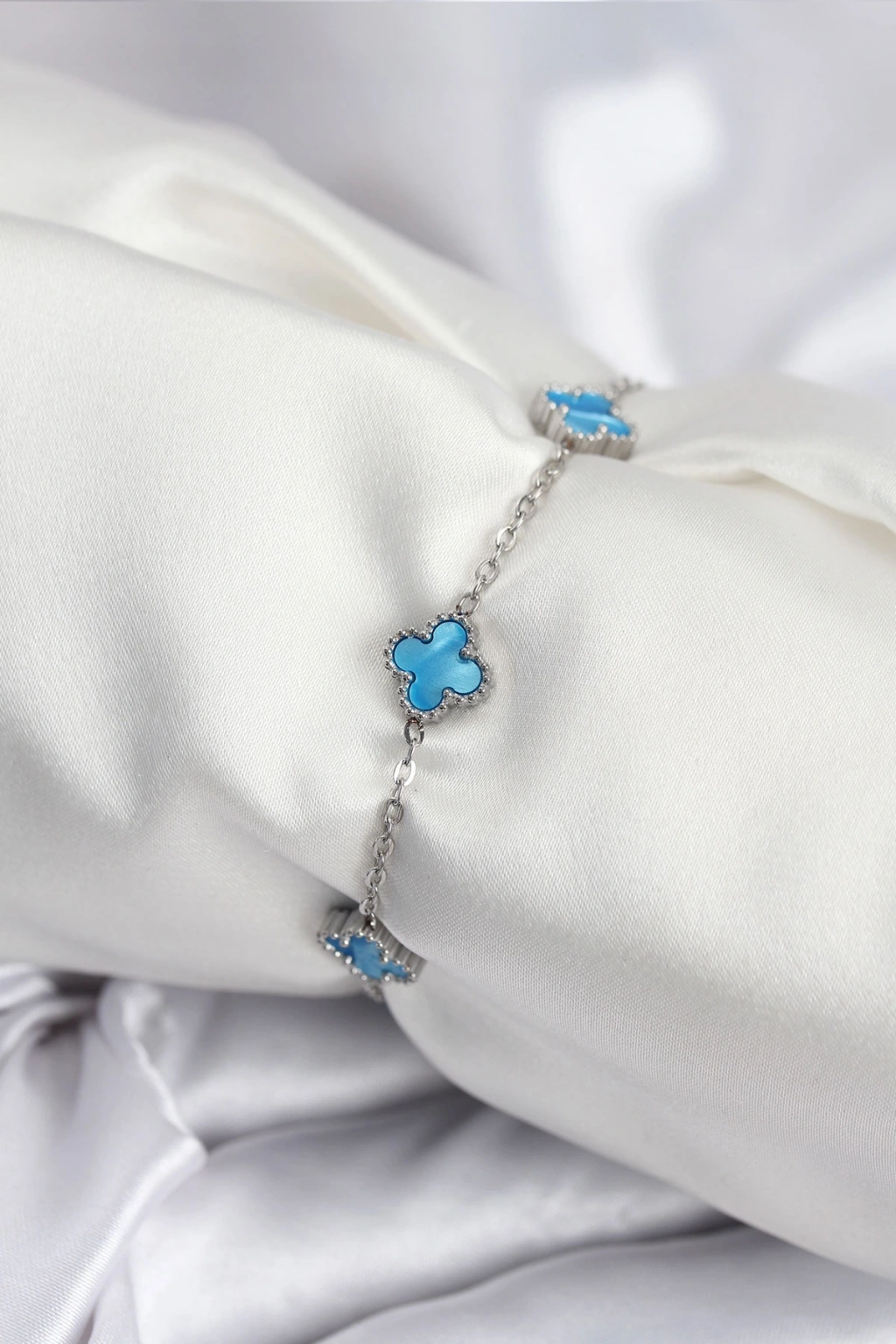 Erb 316L Çelik Gümüş Renk Buz Mavisi Baby Boy Yonca Kadın Bileklik