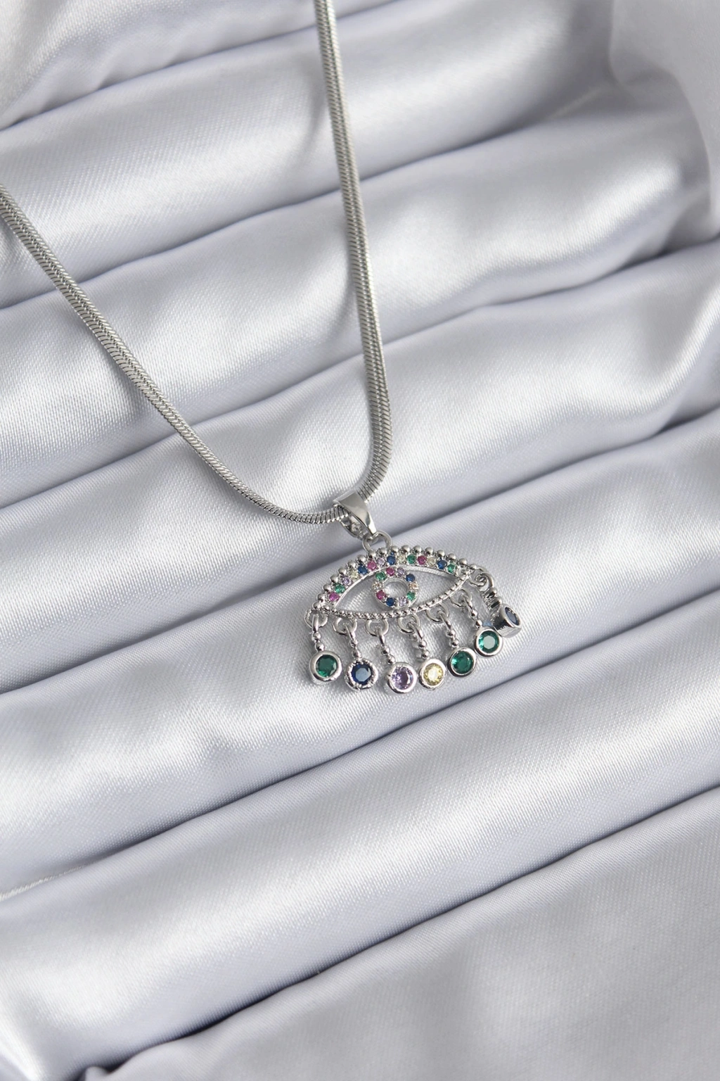 Erb 316L Çelik Gümüş Renk İtalyan Zincir Zirkon Taşlı Göz Figür Kadın Kolye