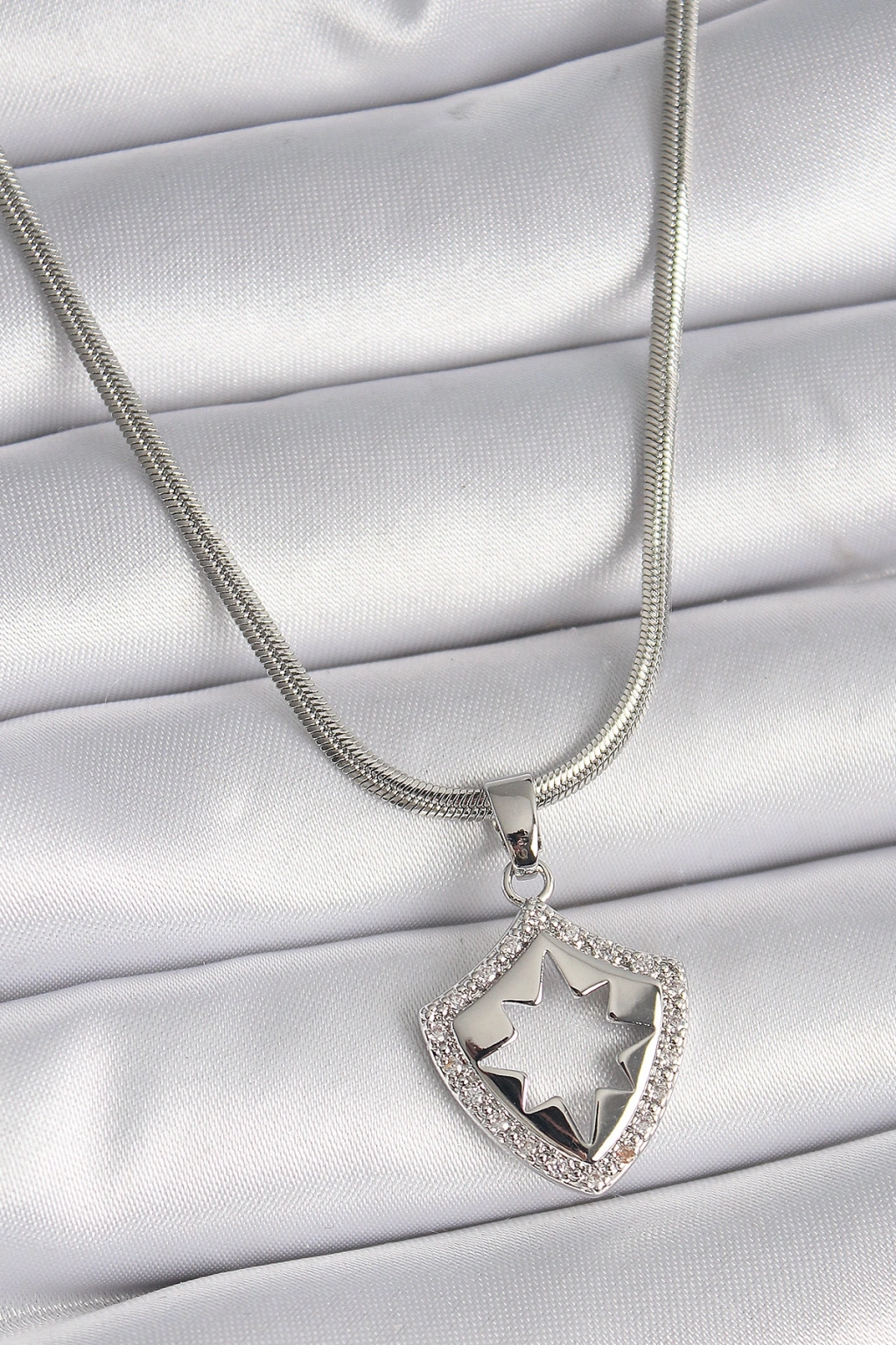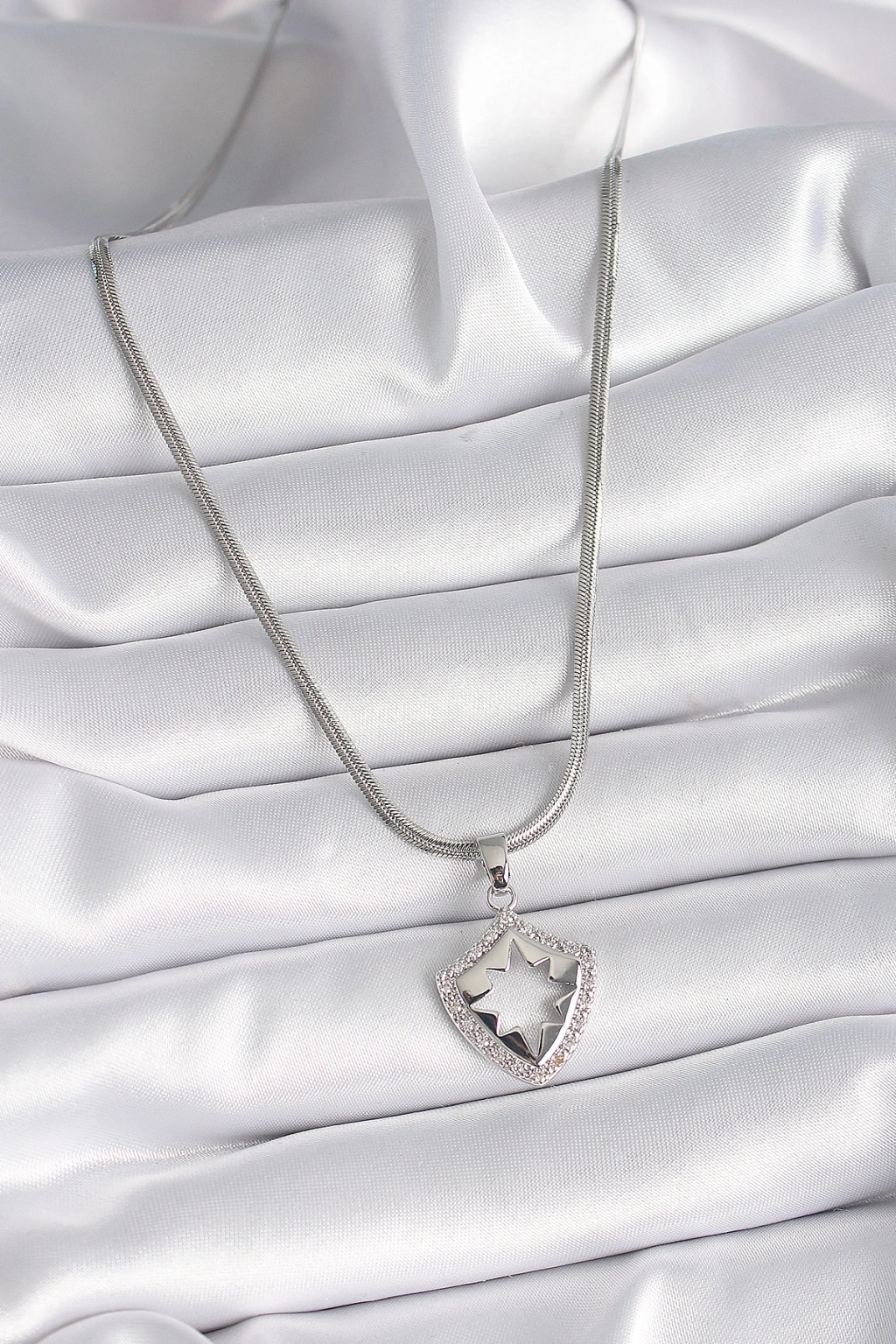 Erb 316L Çelik Gümüş Renk İtalyan Zincir Zirkon Taşlı Kutup Yıldızı İşleme Model Kadın Kolye