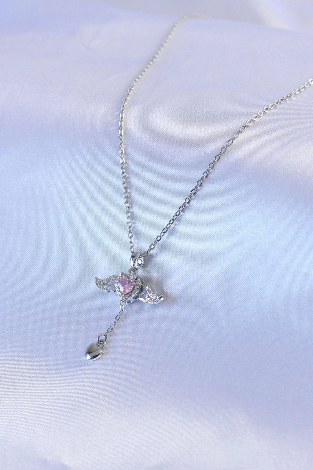 Erb 316L Çelik Gümüş Renk Kanatlı Kalp Figür Zirkon Taş Detay Kadın Kolye