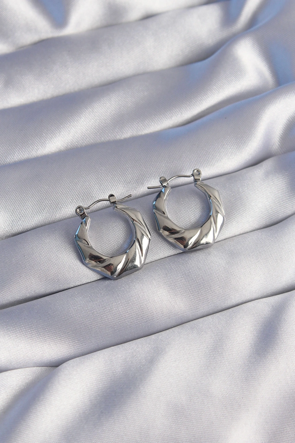 Erb 316L Çelik Gümüş Renk Kıvrımlı Görünüm Geometrik Model Küpe