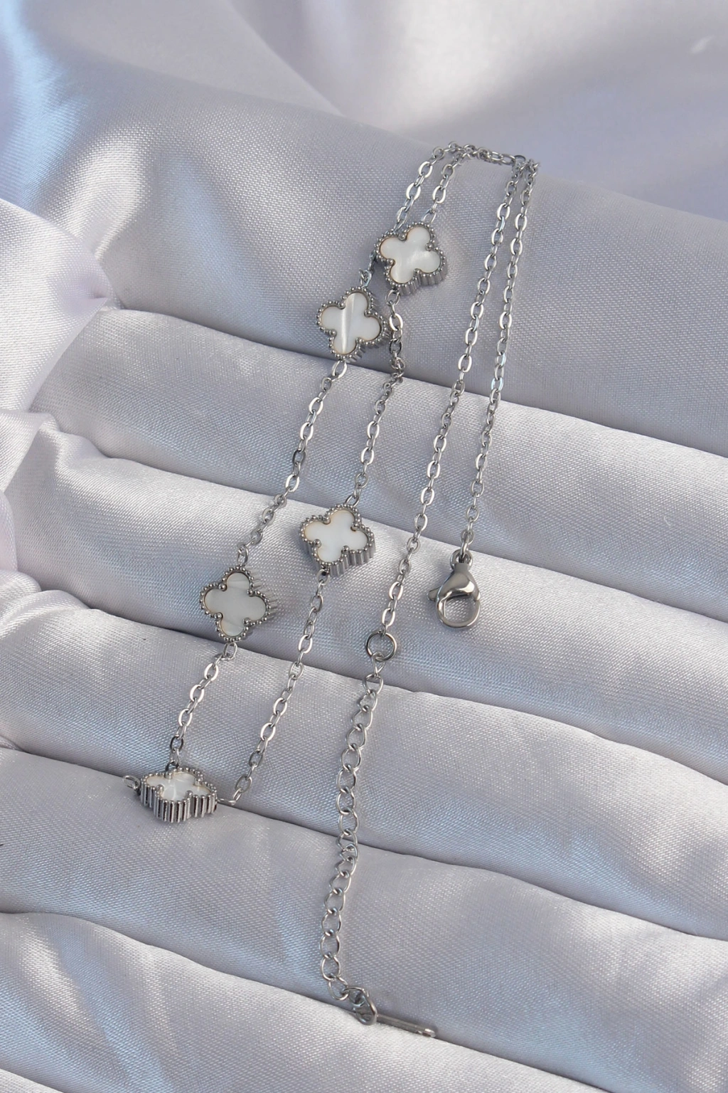 Erb 316L Çelik Gümüş Renk Minimal Beyaz Sedefli Yonca Kolye