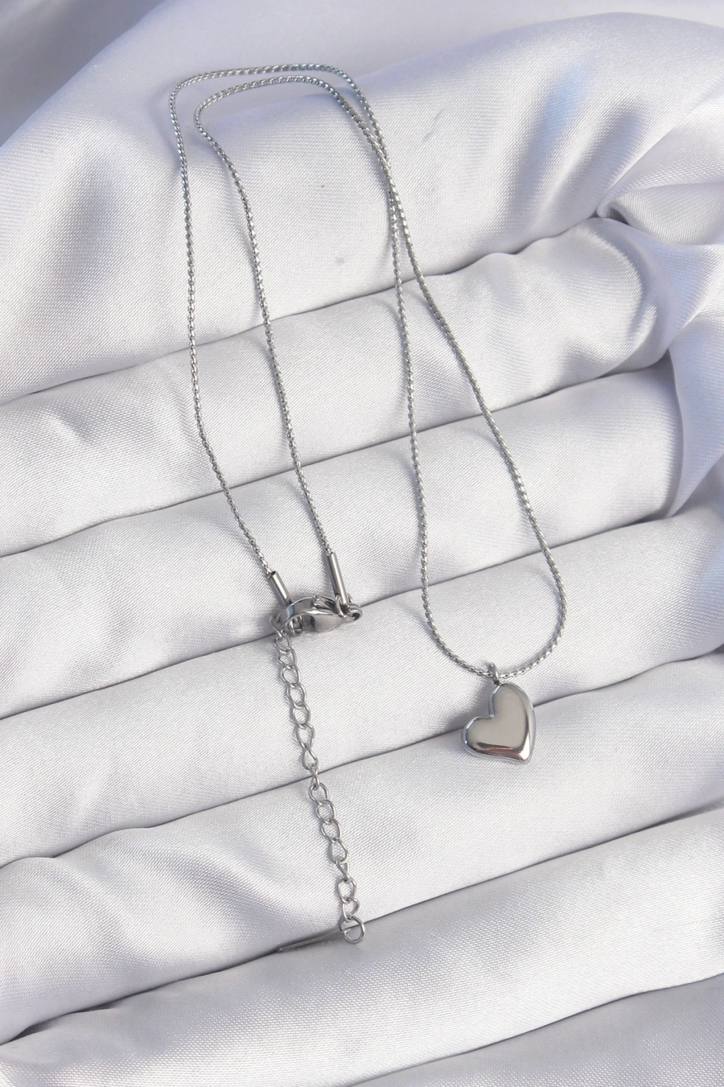Erb 316L Çelik Gümüş Renk Minimal Kalp Tasarımlı Kolye