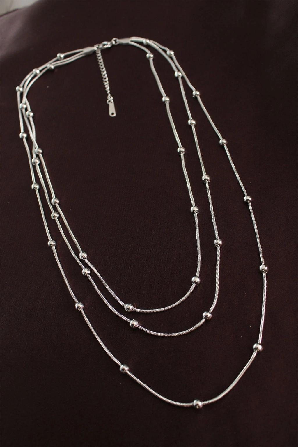 Erb 316L Çelik Gümüş Renk Minimal Topçuk Model Çoklu Kolye