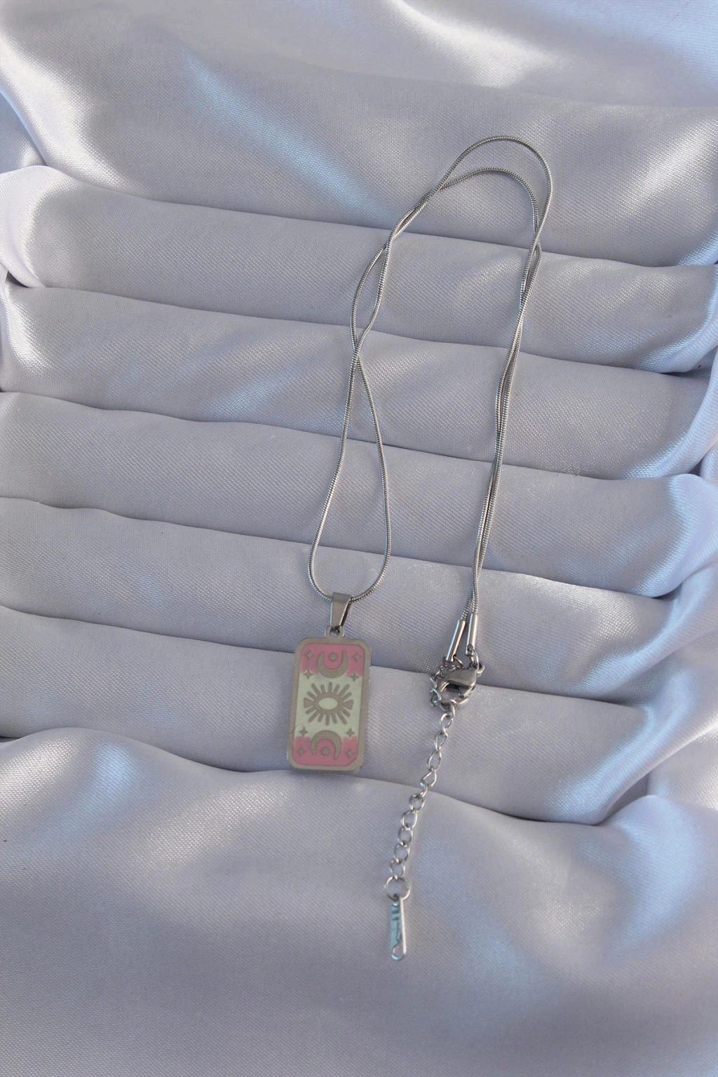 Erb 316L Çelik Gümüş Renk Pembe Mineli Ay Figür Tarot Kolye