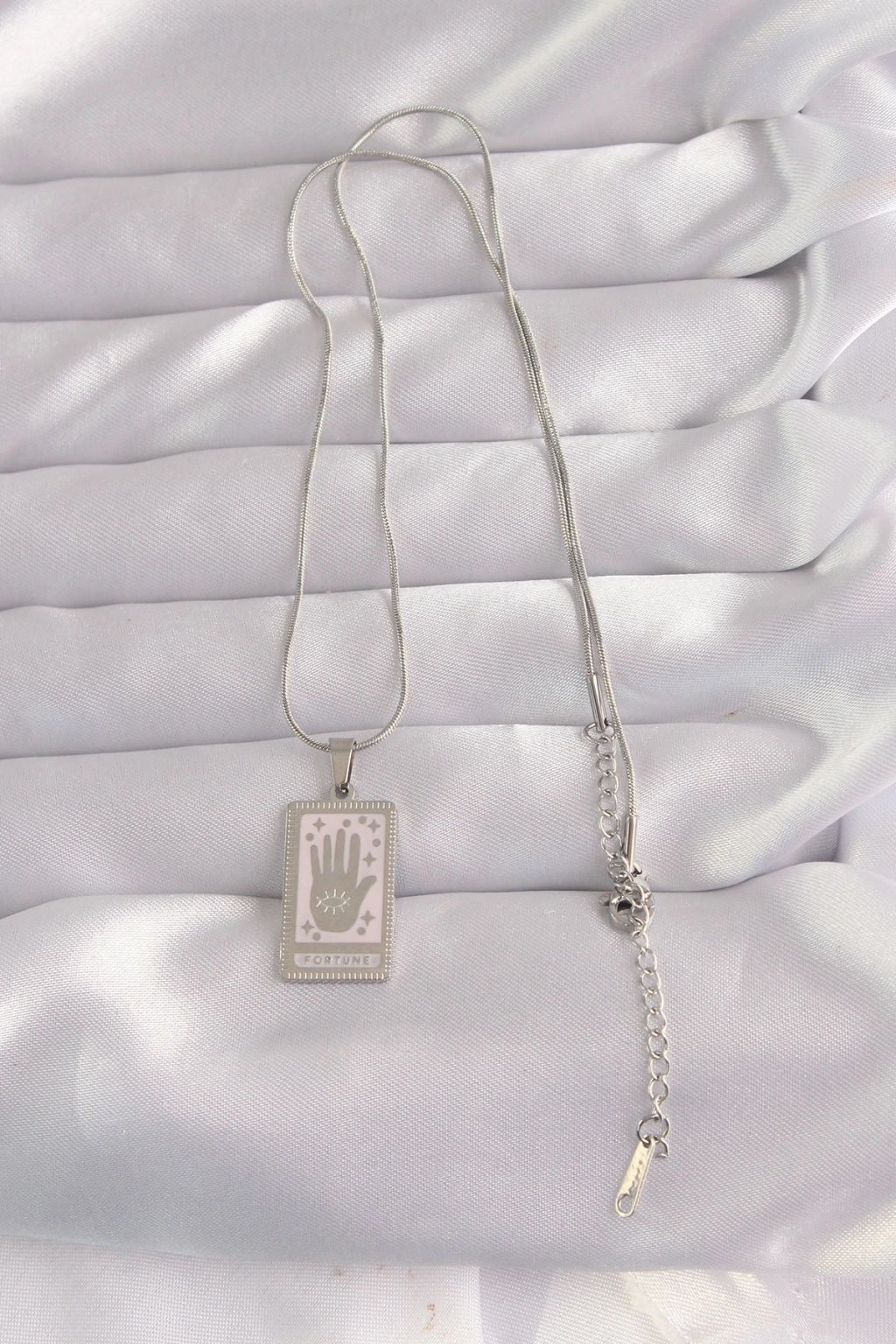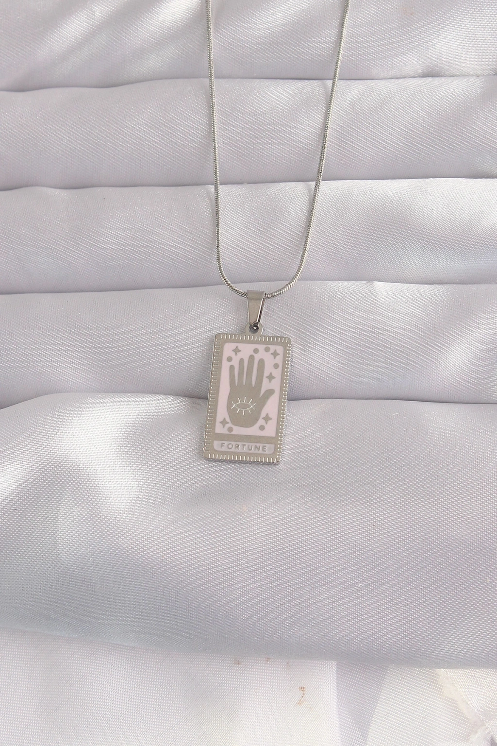 Erb 316L Çelik Gümüş Renk Pembe Mineli El Figür Tarot Kolye