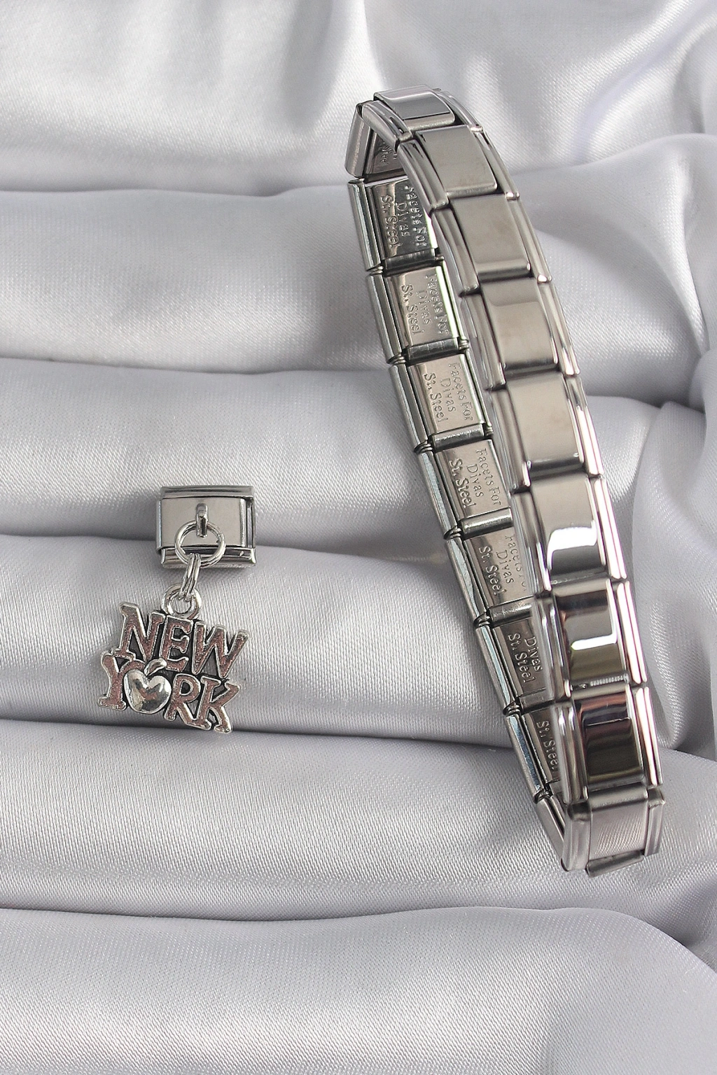 Erb 316L Çelik Gümüş Renk Sallantı New York Yazı Model Nomination Charm