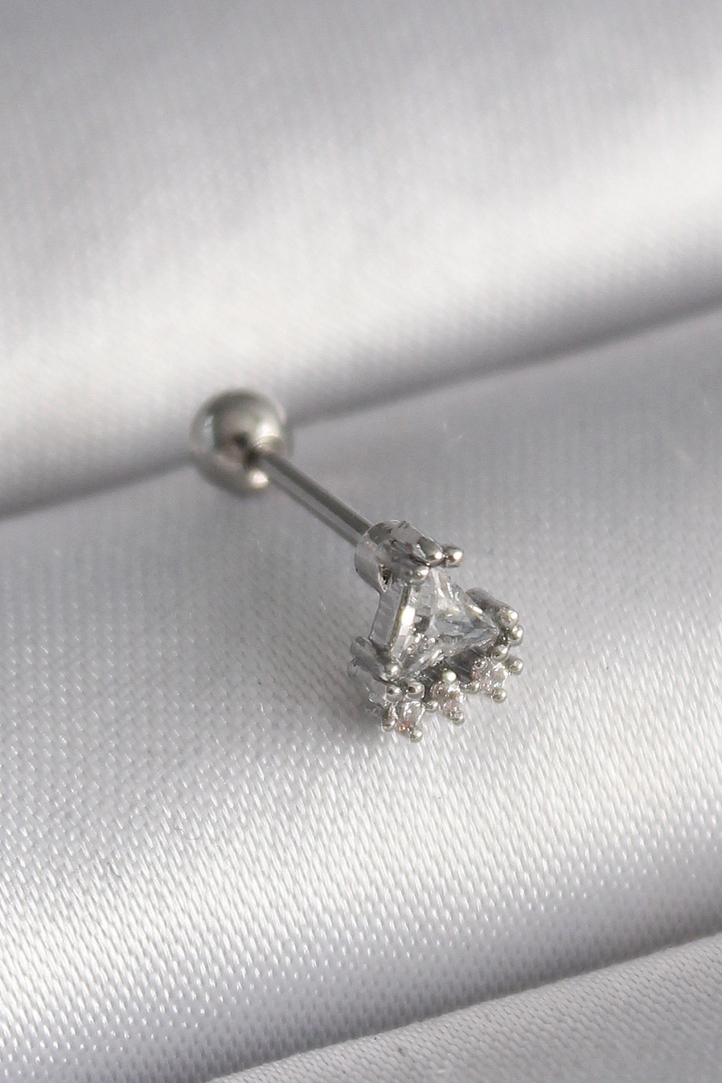 Erb 316L Çelik Gümüş Renk Üçgen Zirkon Taşlı Tragus Piercing