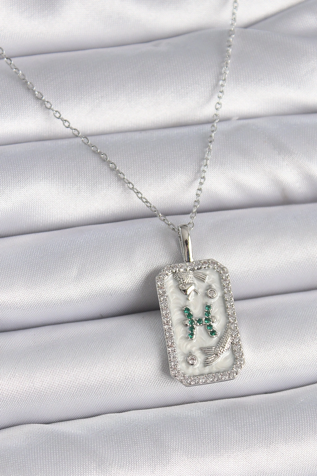 Erb 316L Çelik Gümüş Renk Zincir Balık Burcu Zirkon Taşlı Kadın Kolye