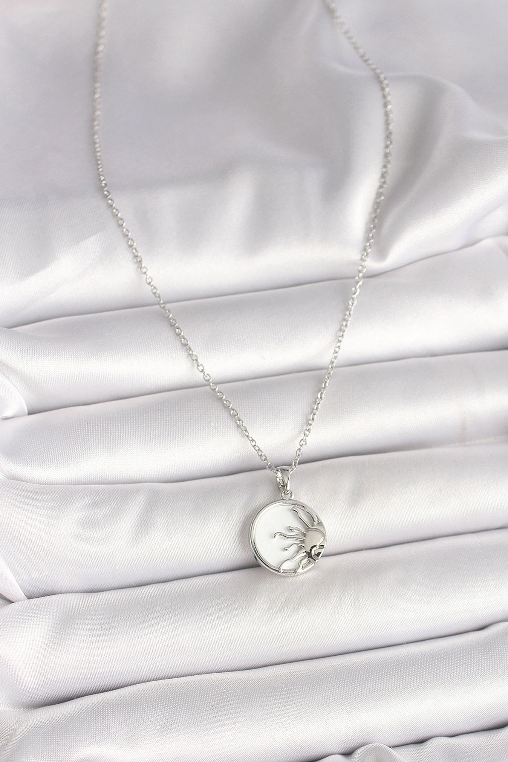 Erb 316L Çelik Gümüş Renk Zincir Beyaz Mineli Gün Batımı Model Kadın Kolye